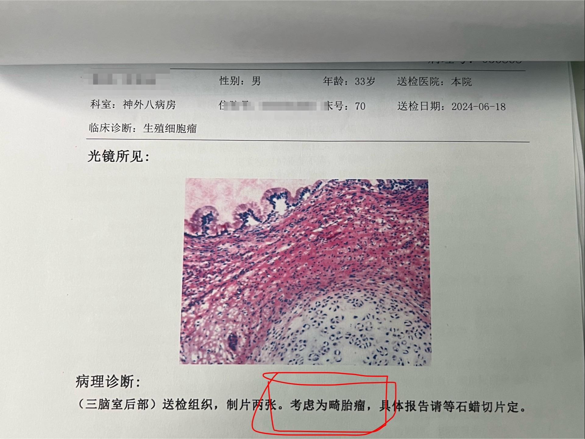 33岁贵州男性,脑部畸胎瘤。33岁贵州男性,病史11年。...