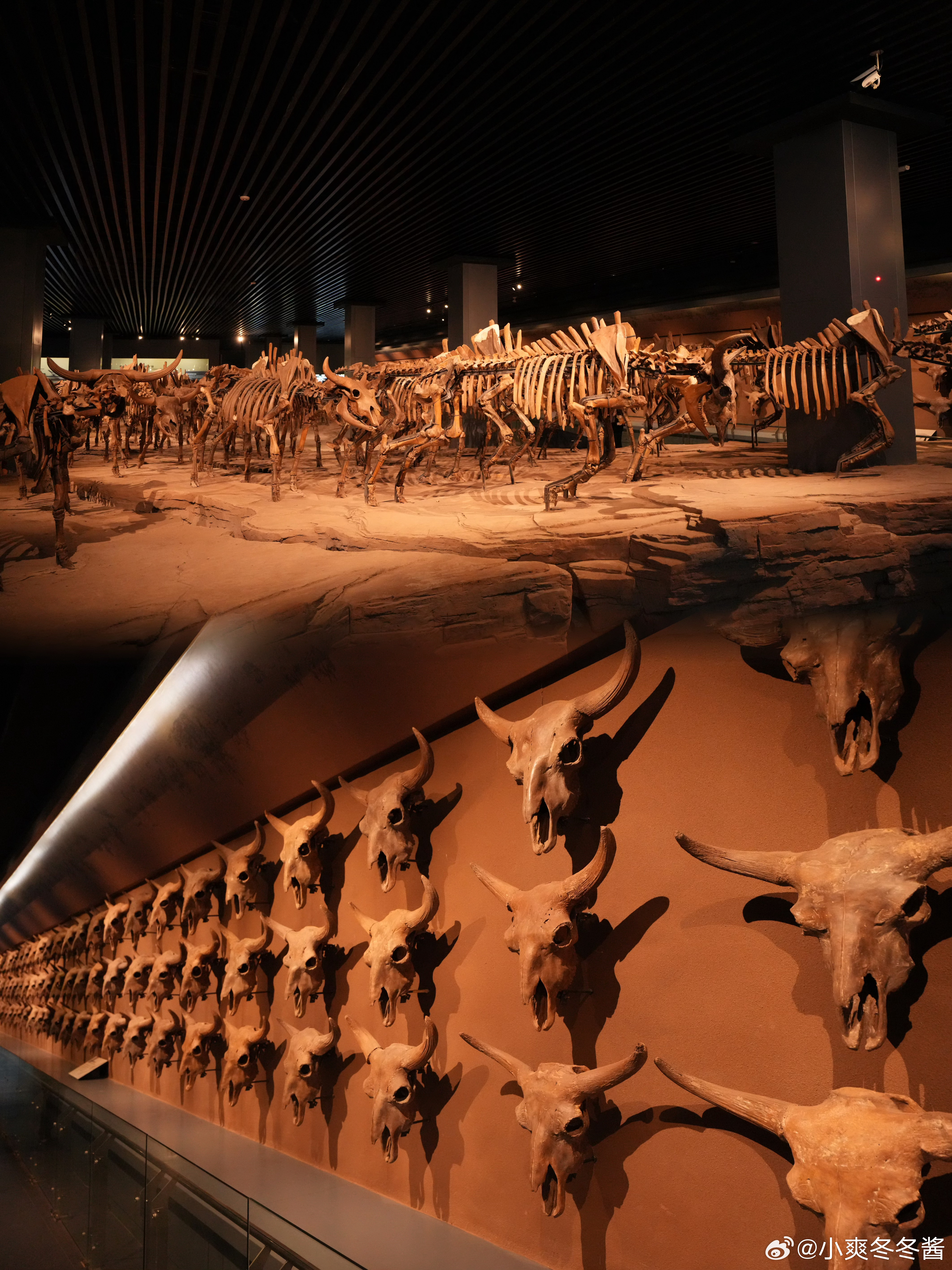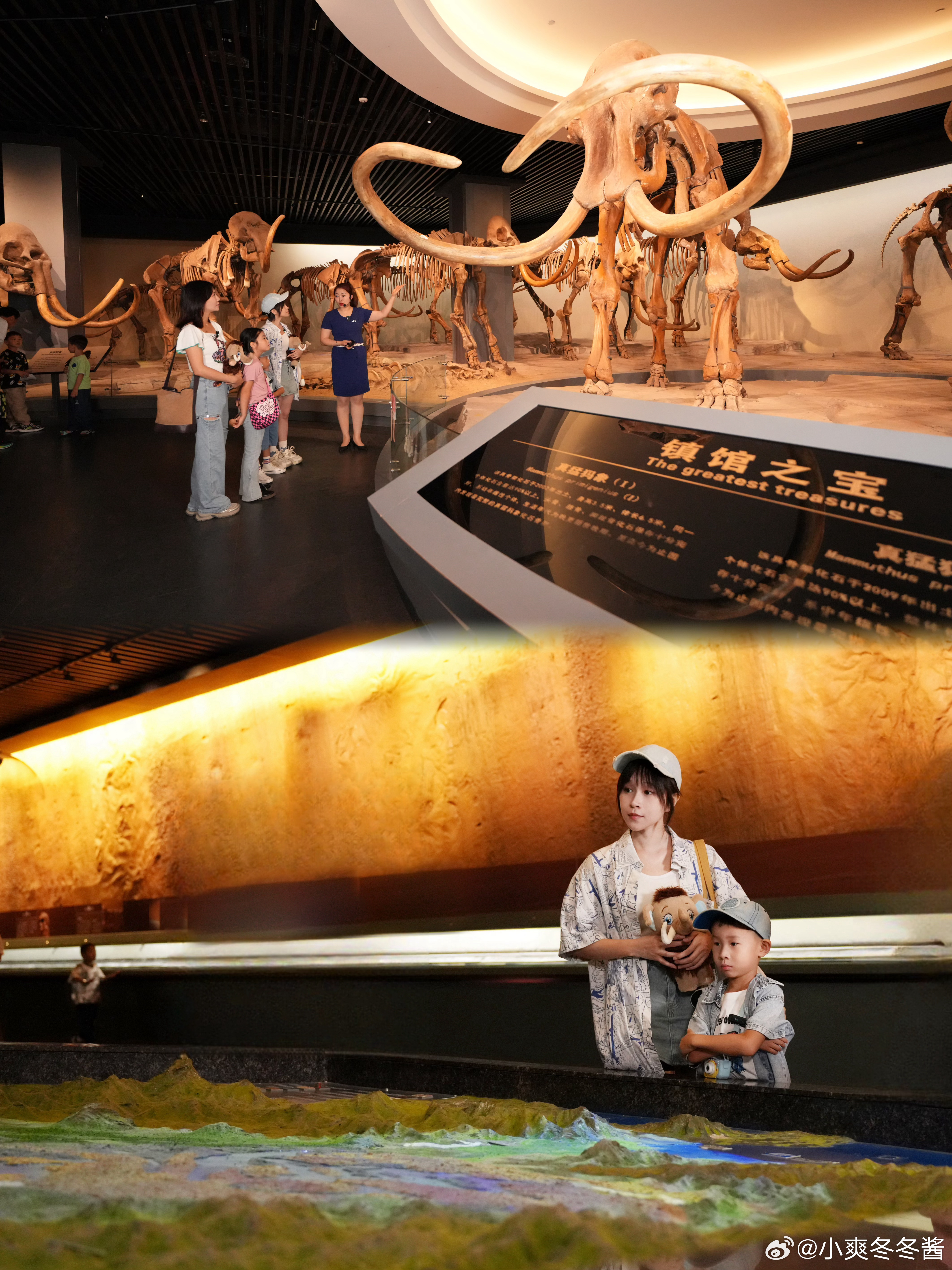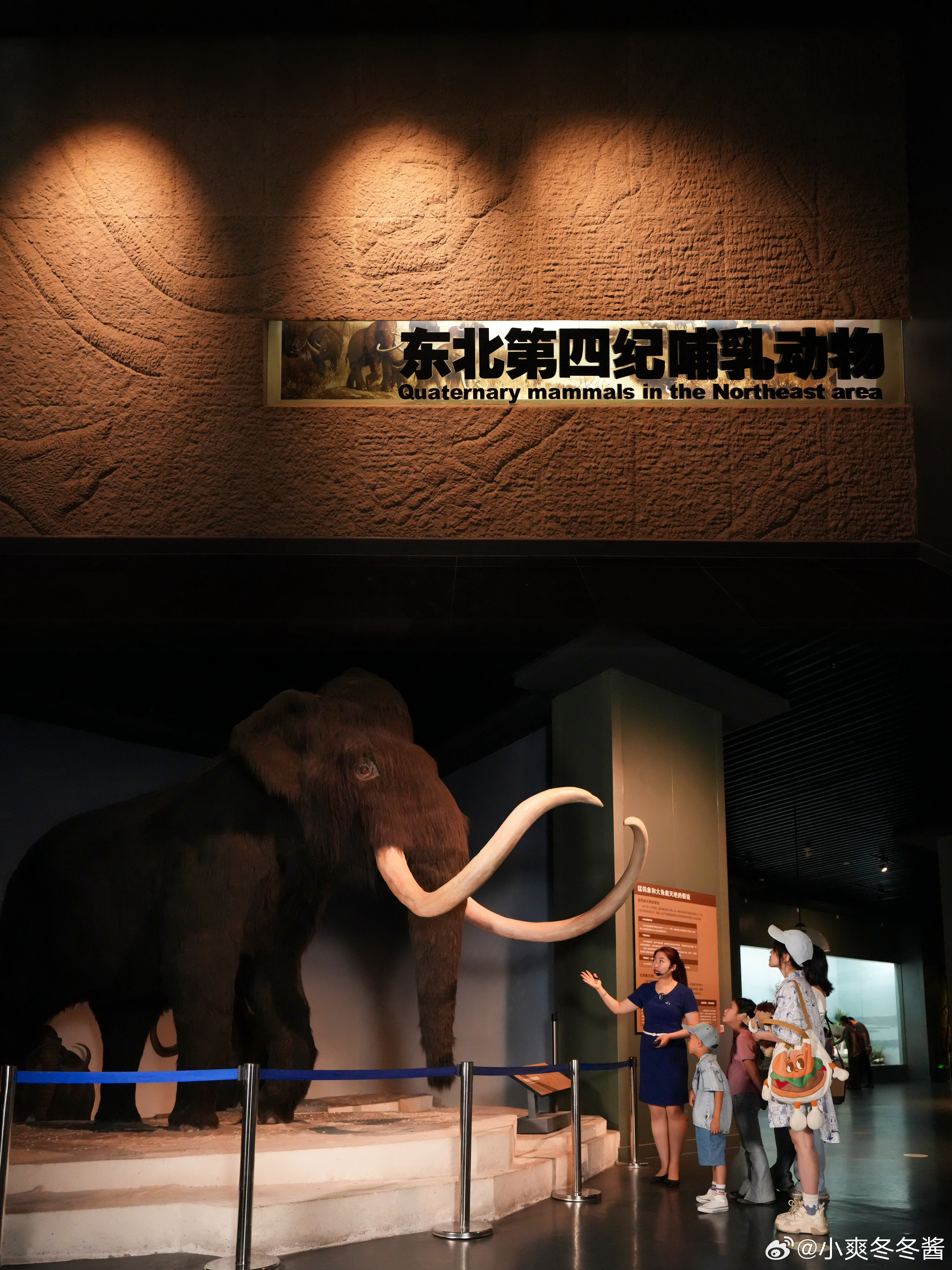 小爽一走进去,便是一声长长的惊叹:哇~~镇馆之宝猛犸象化石,还有许多完整度非常高的,已经灭绝的动物化石,馆内也充分还原模拟了东北第四纪的自然环境,感叹这自然的变化,还好有化石留下了它们曾经生活过在这地球的痕迹。