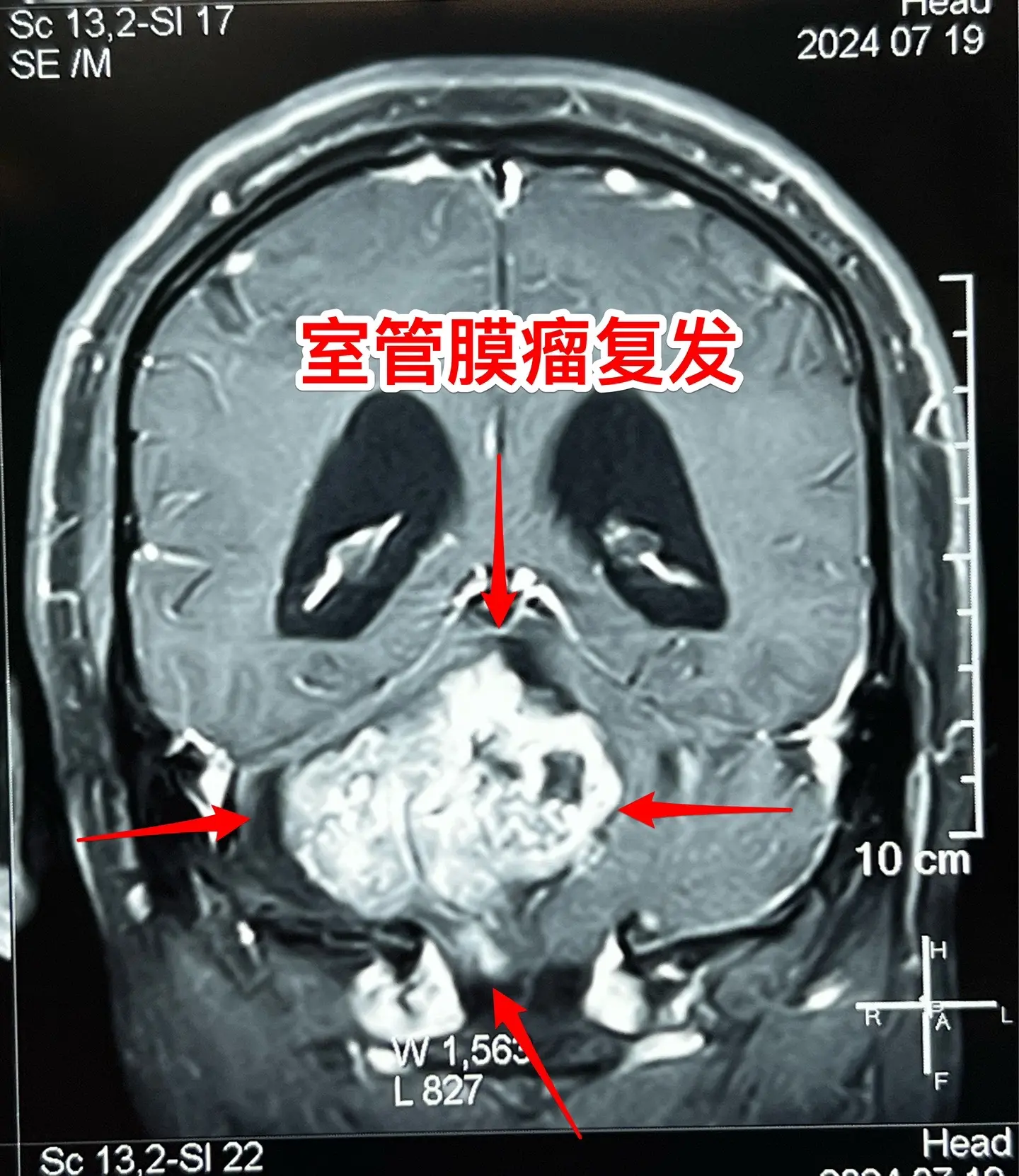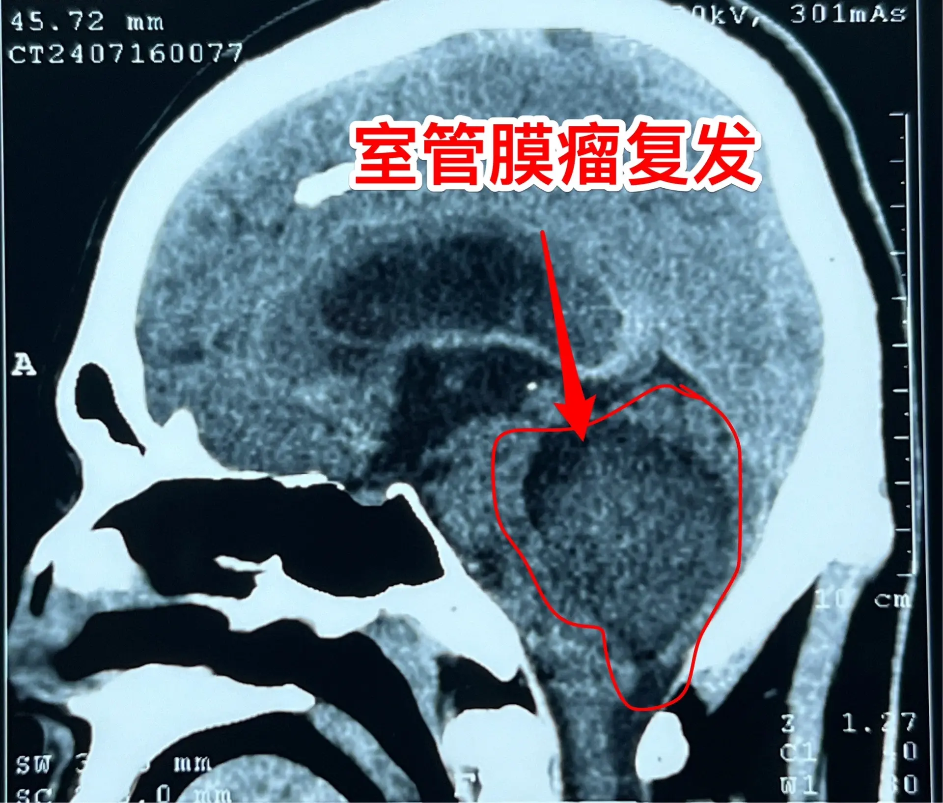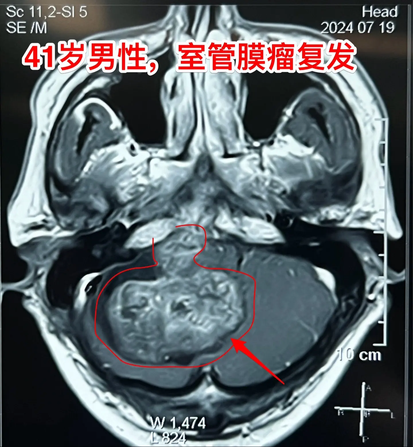 室管膜瘤是良性肿瘤还是恶性肿瘤?41岁的青海省病人,在八年前作过一次开颅手术,现在肿瘤复发了,而且体积很大,脑干实质也受到肿瘤侵蚀,病人有面瘫症状。