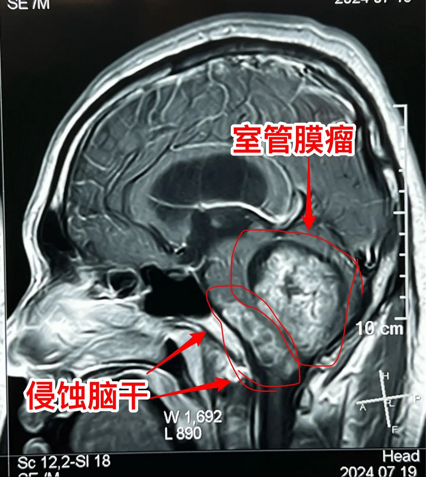 室管膜瘤也可以发生在大脑实质内,一般来说,比小脑的室管膜瘤预后要好。