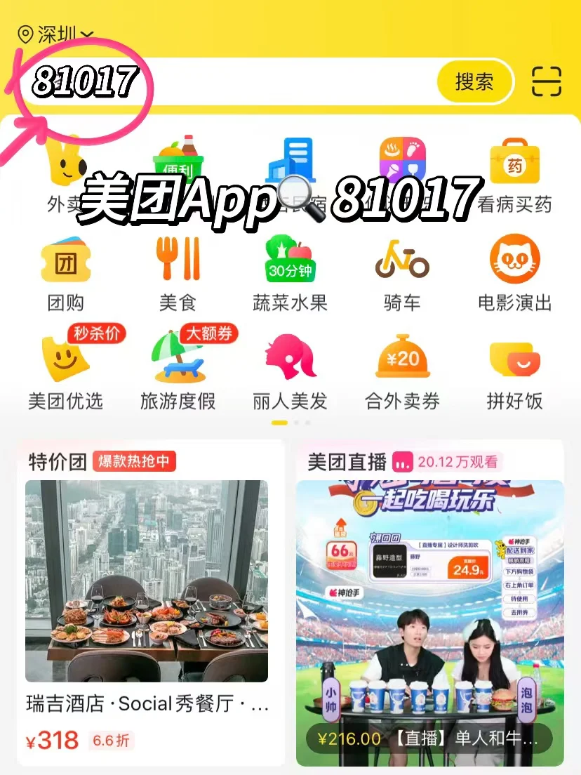 美团app搜【81017】