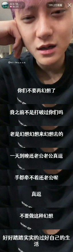 “你们不要再幻想了,之前不是打破过你们吗?老是幻想来幻想去的。一天到晚还老公老公,真逗!手都牵不着呢,还老公?不要再做这种幻想,好好踏踏实过好自己的生活。”
