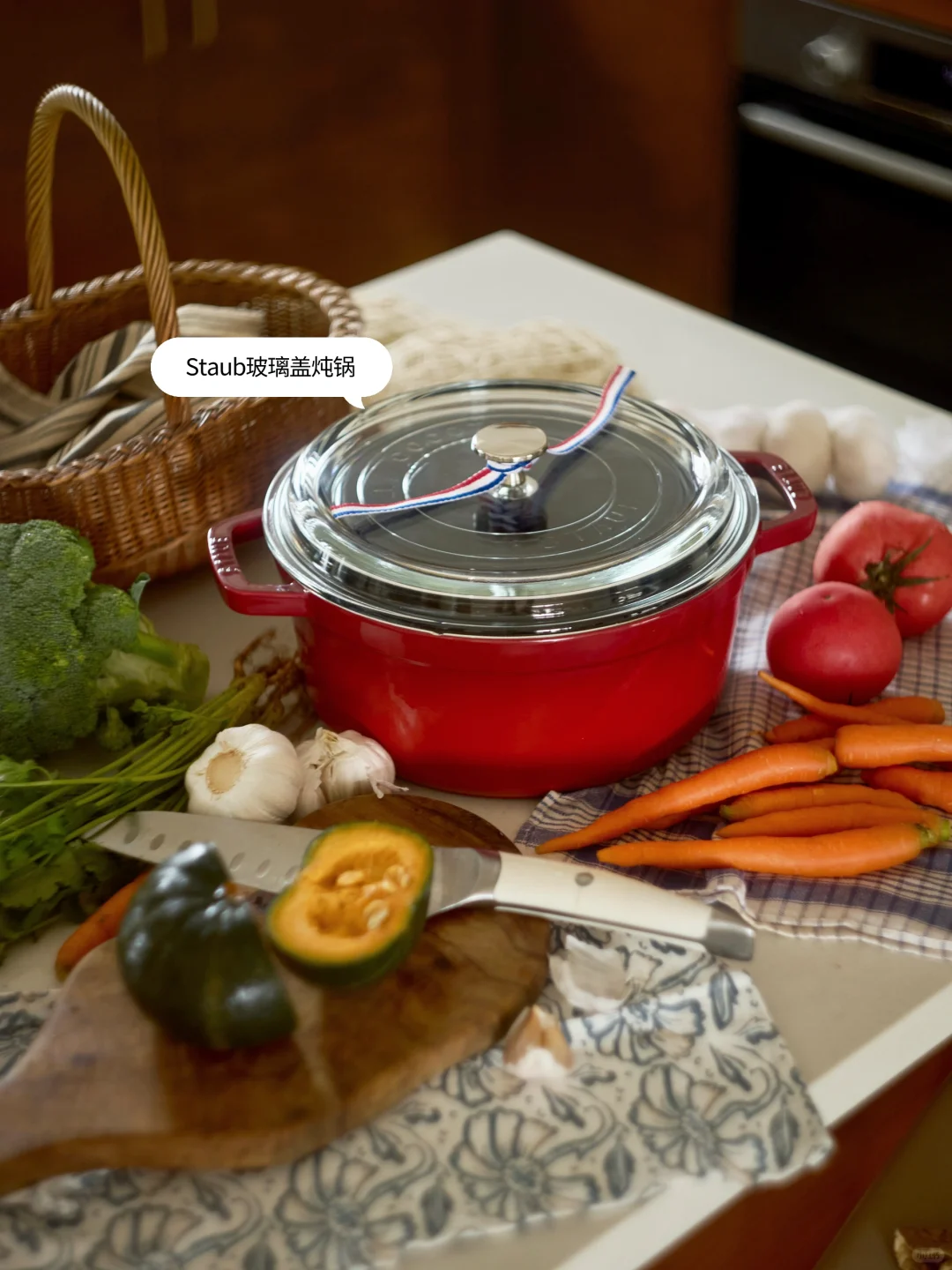 它家比较出名的产品当属炖锅了。这款渐变樱桃红的颜色十分诱人,给整个厨房都带来了活力。并且搭配的是玻璃锅盖,方便烹饪过程中查看。
