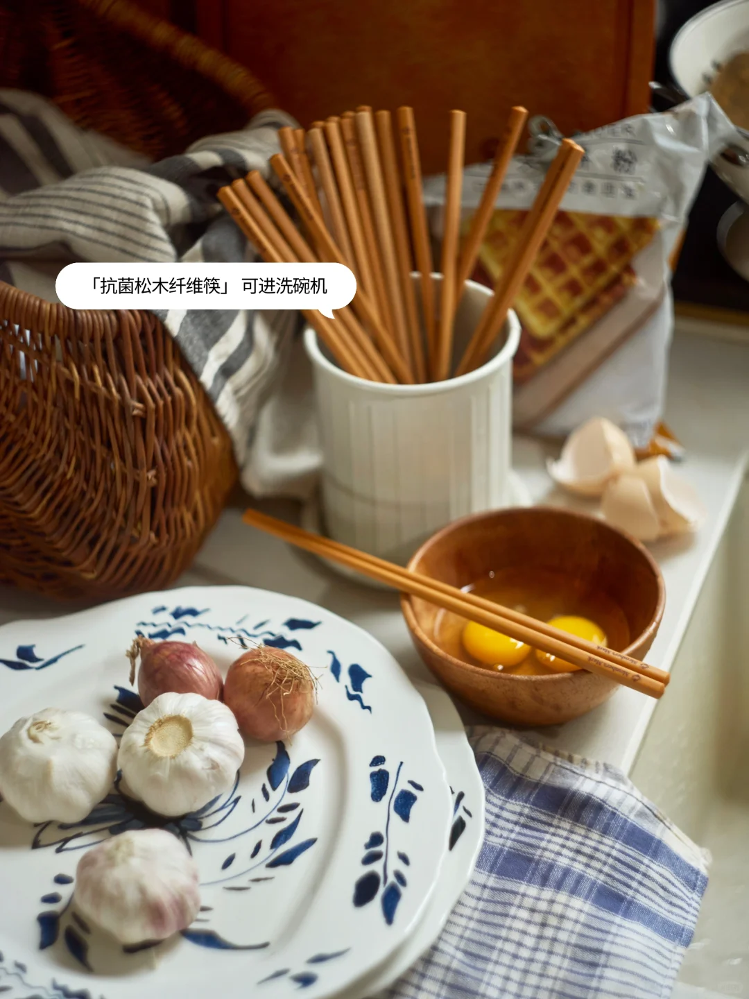 这款木筷子采用的是高压致密化工艺,不容易吸水渗透,也就没有传统木筷子容易发霉、磨损的问题。P.S. 可以放进洗碗机哦!