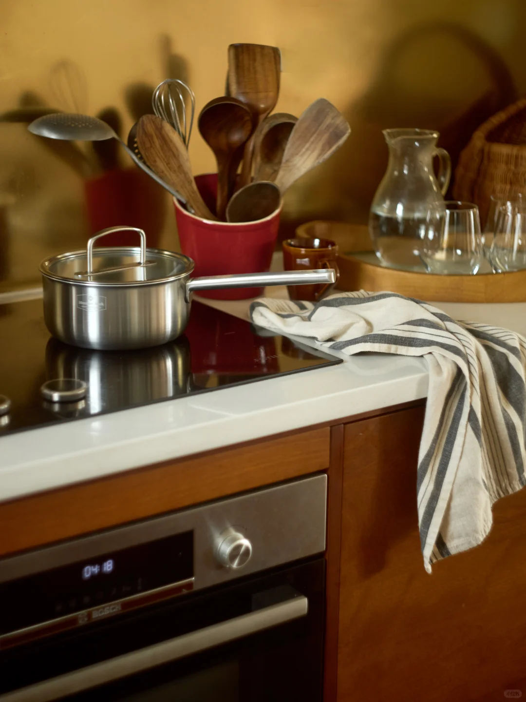 汤锅和奶锅也属于厨房很必要的两件东西。这款锅的透明锅盖和锅内的刻度标记,都更方便烹饪;锅口边沿的防滴漏设计,让汤水不易溢出。