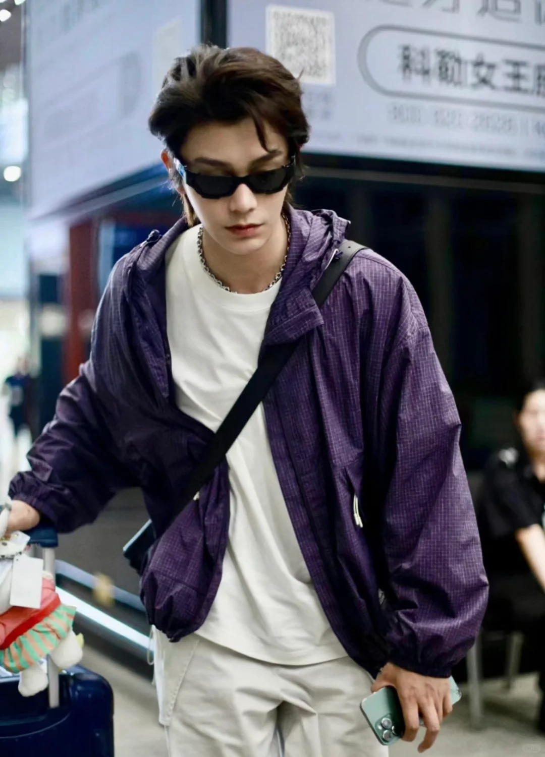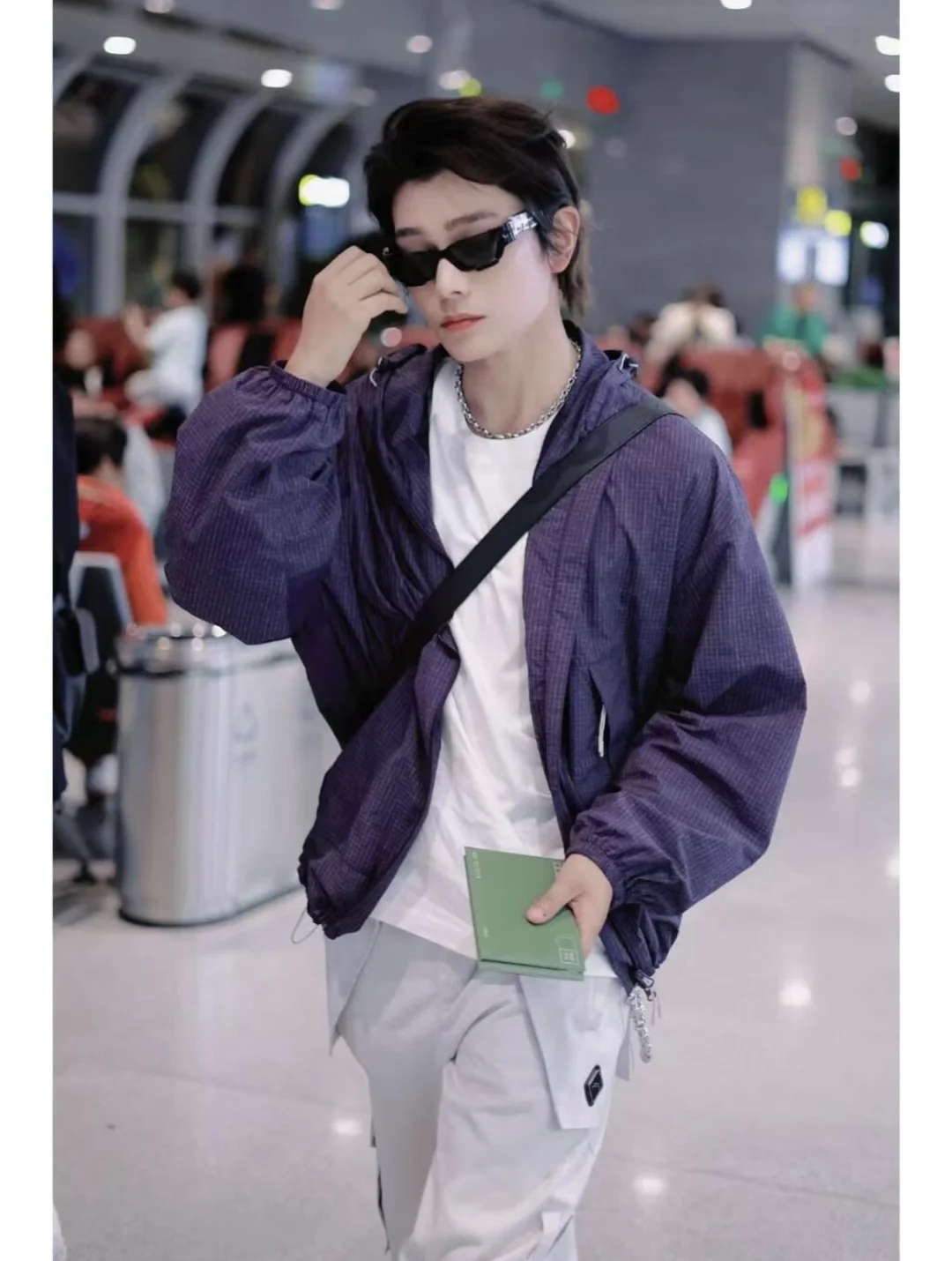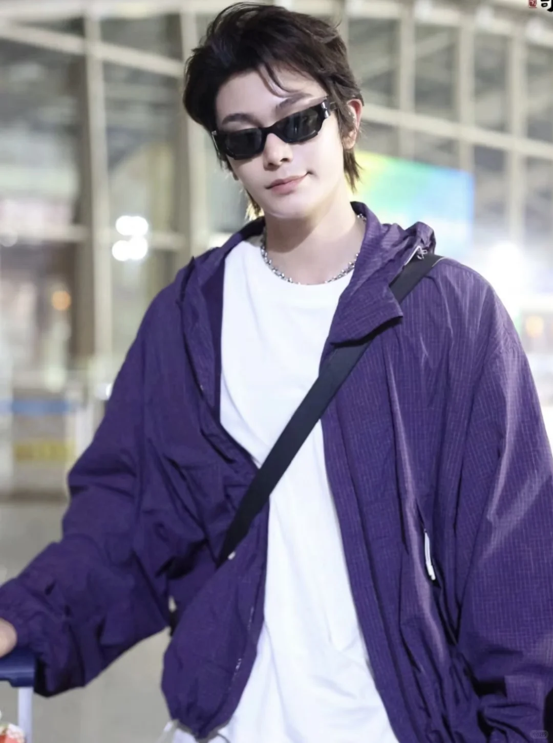 丁禹兮录制《是好朋友的周末》,机场路透照好帅气呀,紫色运动外套搭配工装裤,简约又时髦,好喜欢这件外套,紫色也很适合配情侣款呀,种草啦~