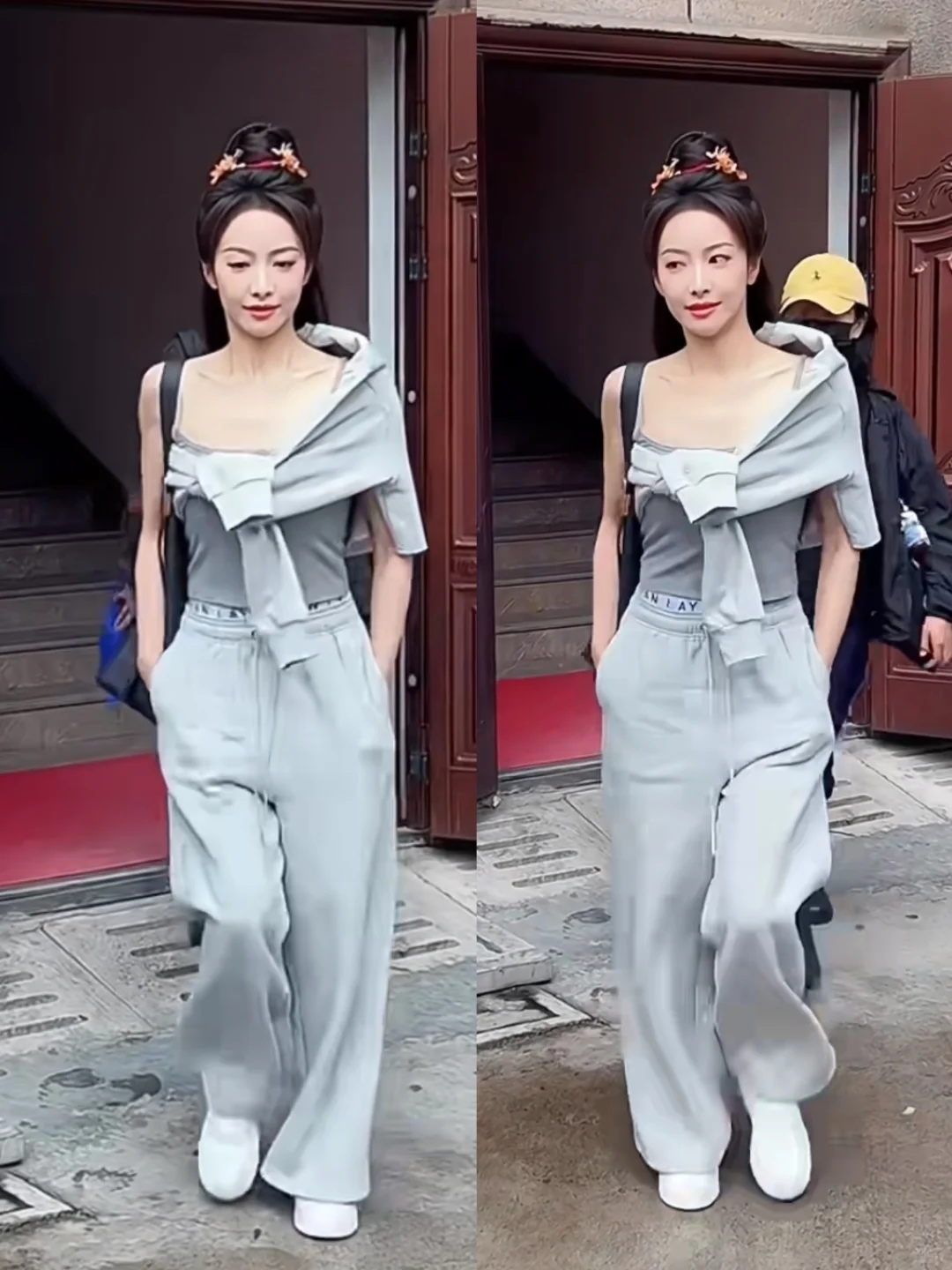 明星私服|宋茜灰色休闲卫衣套装松弛感拉满!