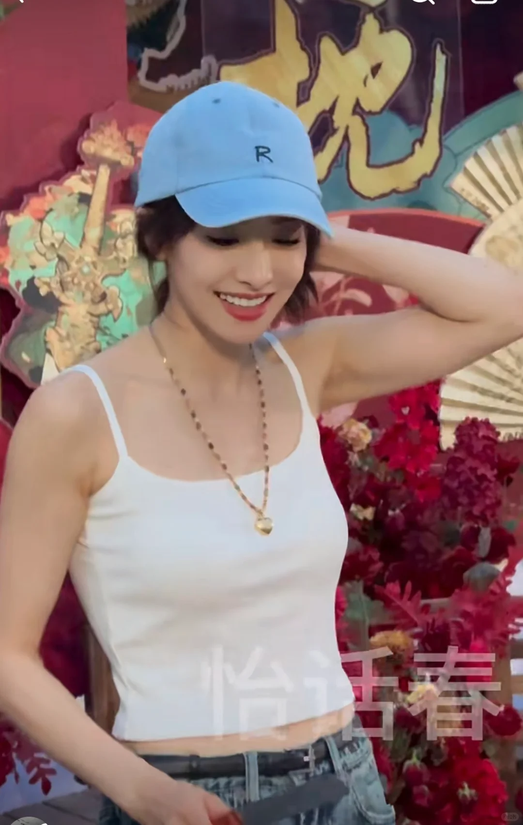 张天爱跟素人合影,胯真的好宽,大宅院似的
