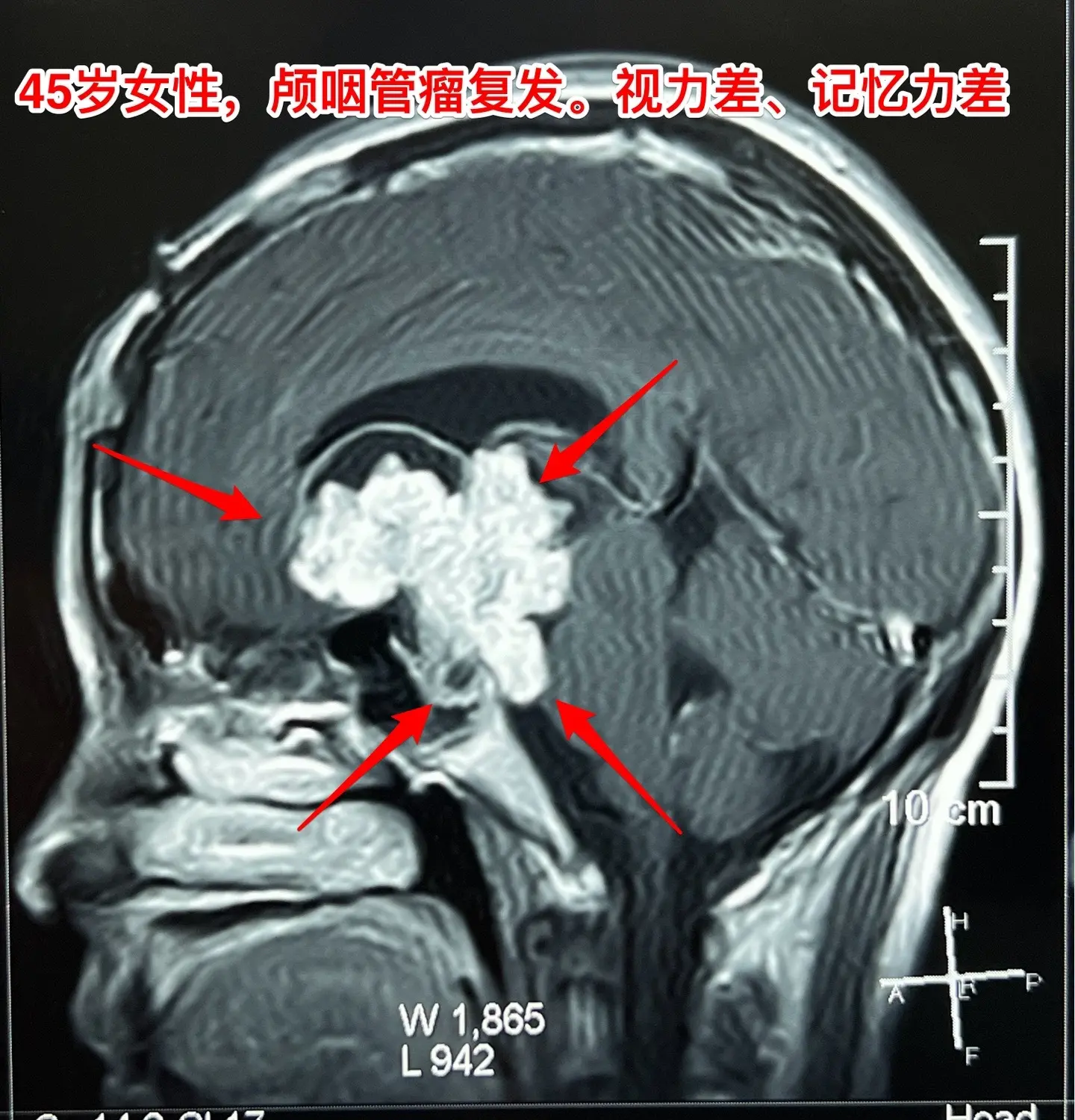 从影像学资料可以看出,这是乳头型颅咽管瘤。如果害怕作手术,对于运气好、经济状况好的病人,也可以试一试靶向药,也许有效。
