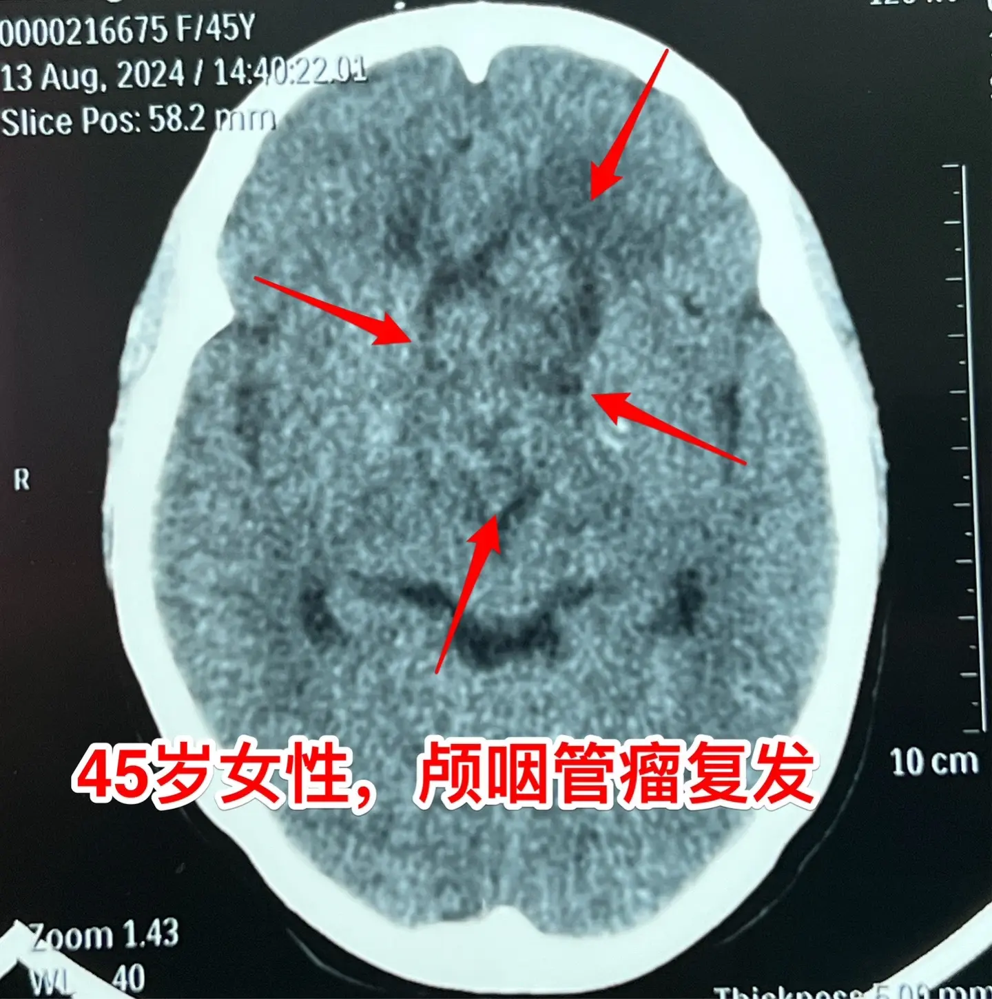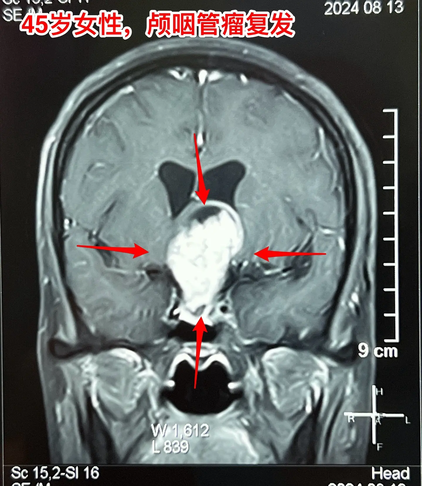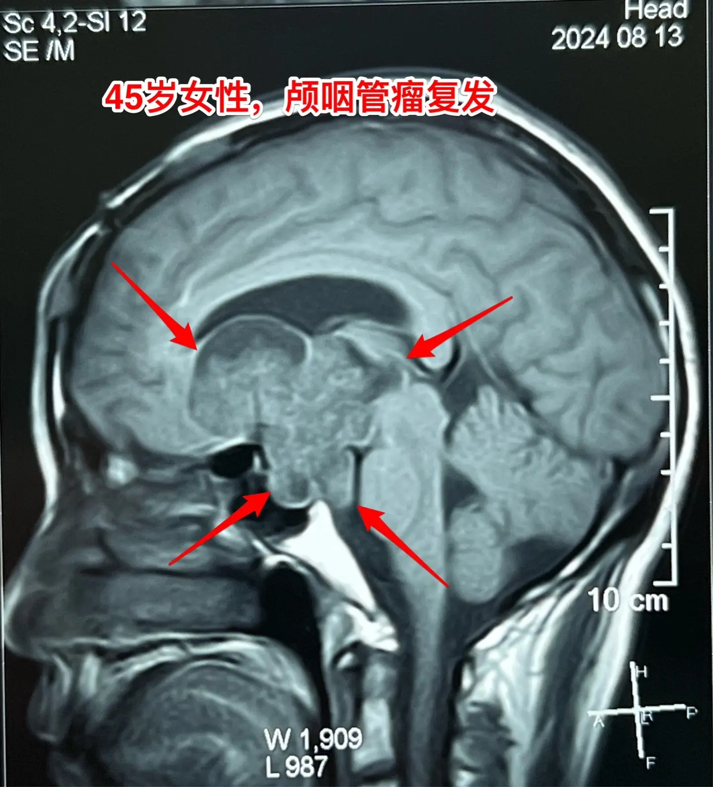 巨大的颅咽管瘤。45岁浙江女性,在外院作了颅咽管瘤手术不到一年,作磁共...