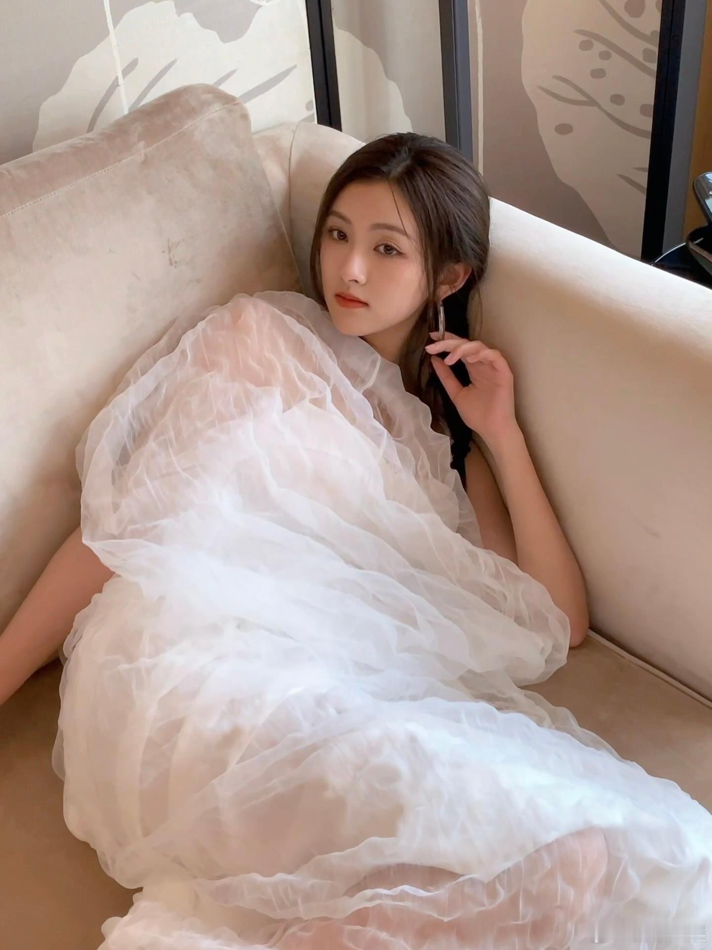 #王奕婷纯白吊带纱裙##王奕婷公主小妹即视感#王奕婷穿着纯白吊带纱裙,似公