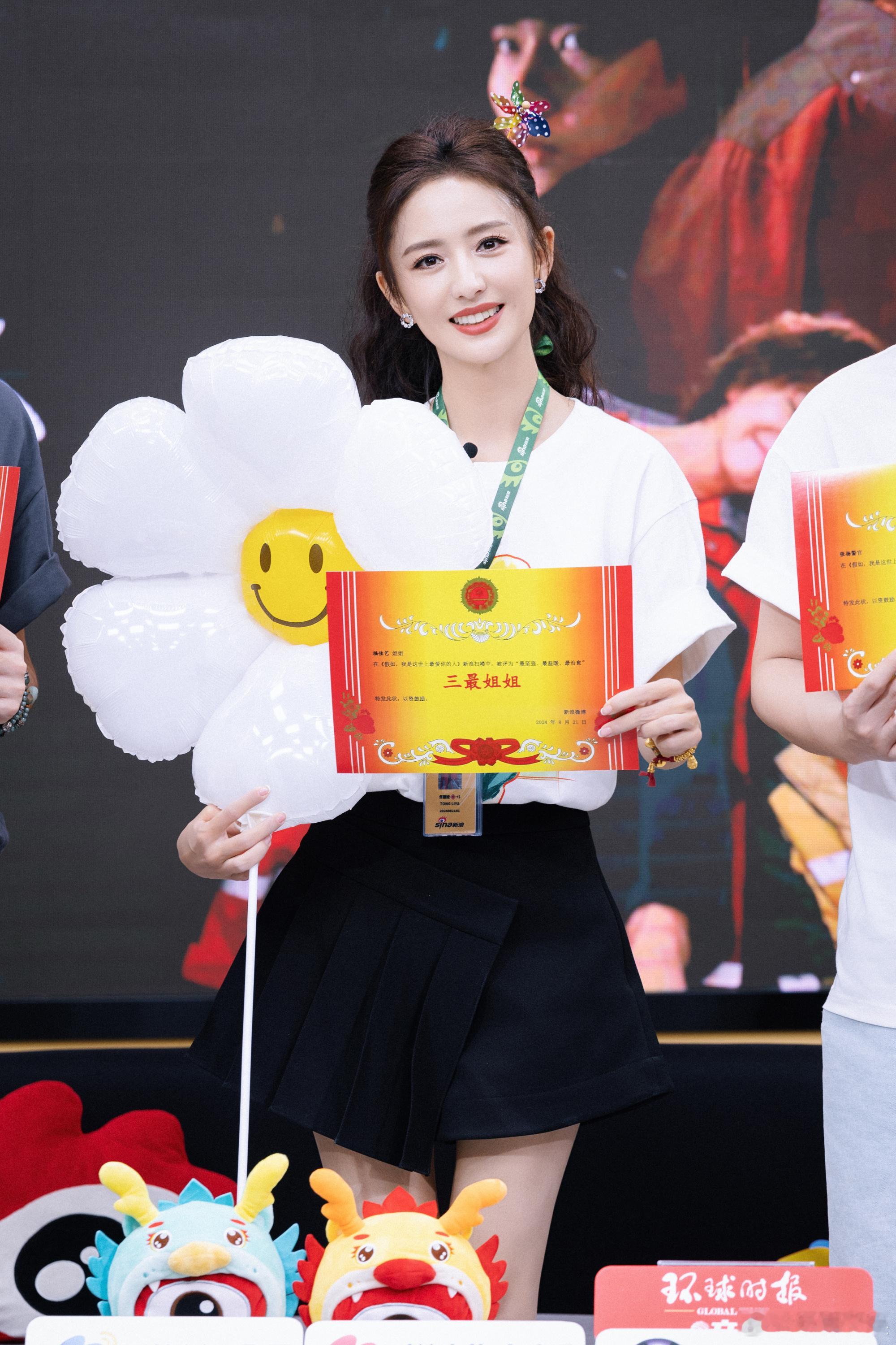 吴艳妮在成都穿着短裤大腿看起来很粗壮,表情自信又张扬