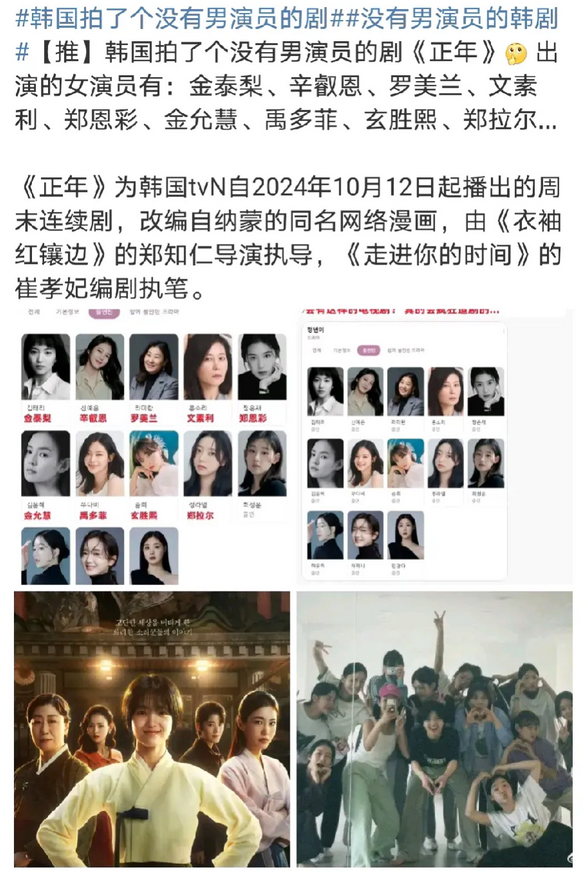 韩剧有时候真的很大胆,在我们还在男女爱情当中沉沦的时候,韩剧拍了一部没有男演员,只有女演员的电视剧,而且演出阵容相当精彩,韩剧的进化速度太快了,不断给人带来惊喜!