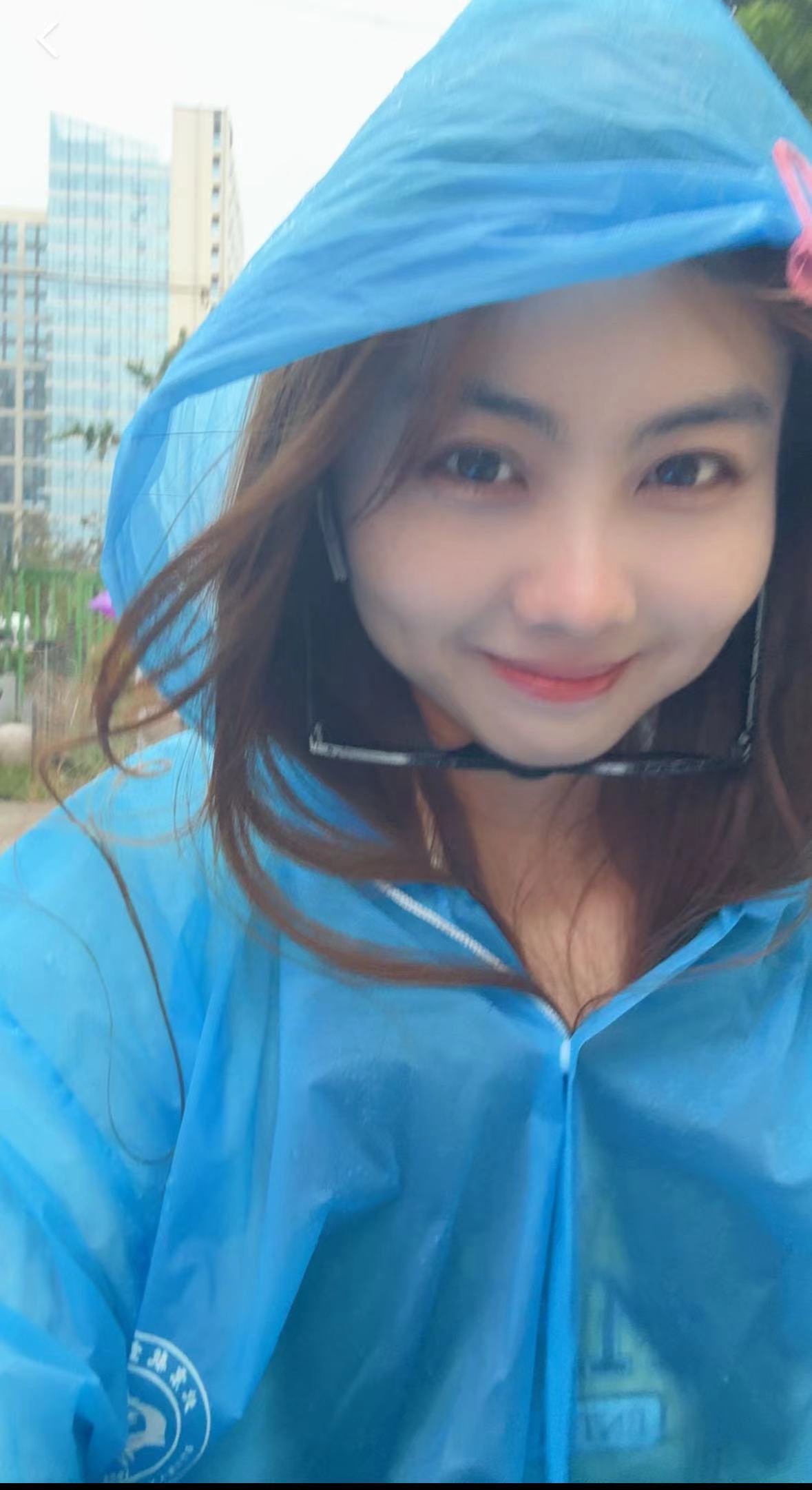 今天的打扮是不是很像蓝精灵?还好这几日的雨不是很大,而且能够感受到温度的变化,一
