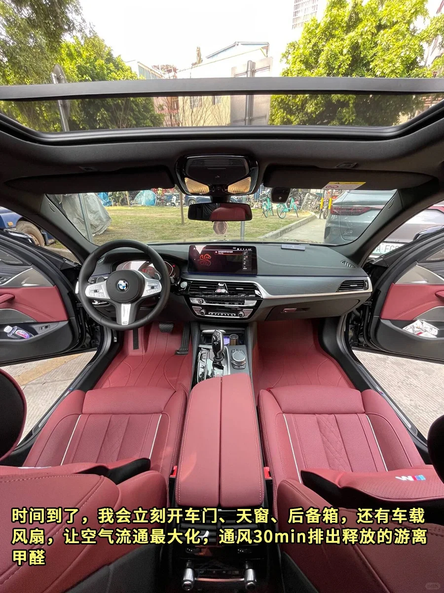 时间到了,我会立刻开车门、天窗、后备箱,还有车载风扇💨让空气流通最大化,通风30min排出释放的游离甲醛