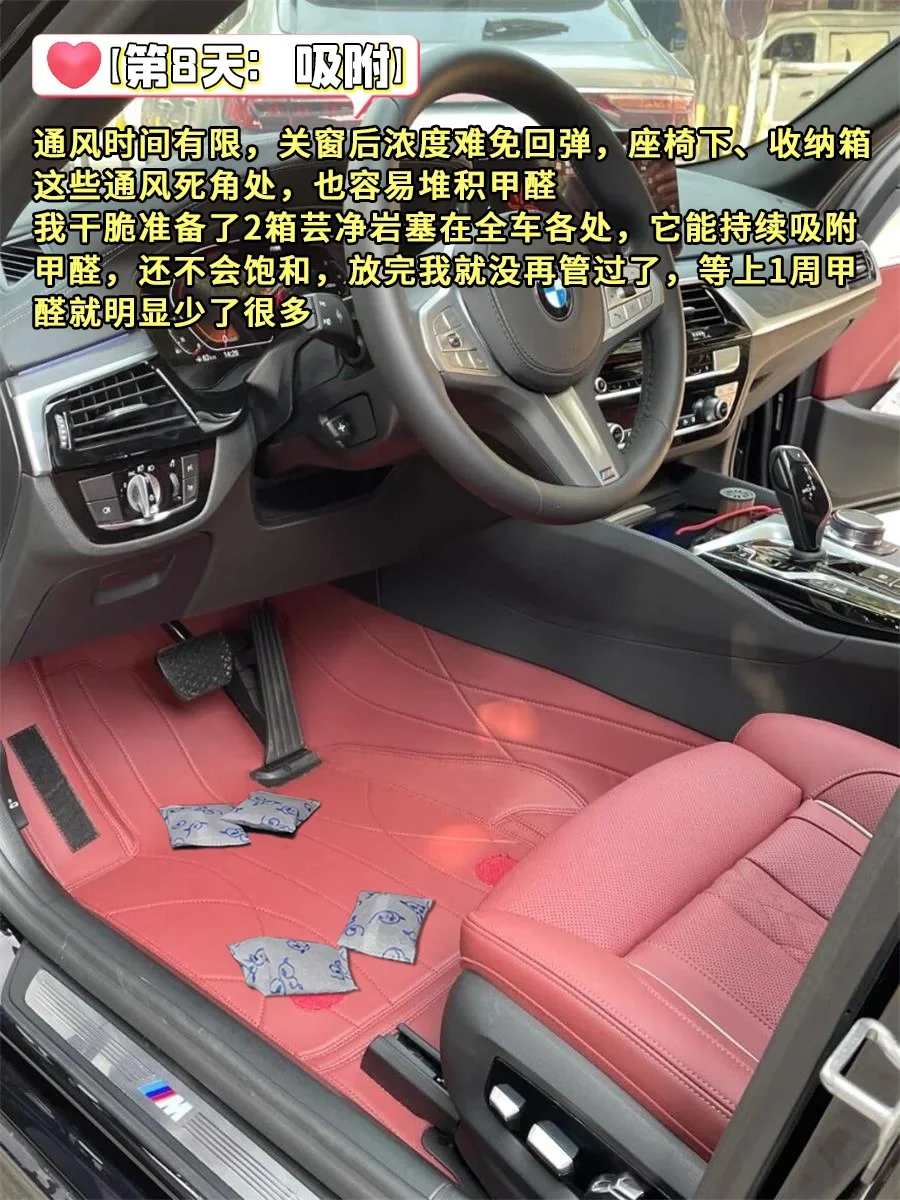 我干脆准备了2箱芸净岩塞在全车各处,它能持续吸附甲醛,还不会饱和,放完我就没再管过了,等上1周甲醛就明显少了很多✌