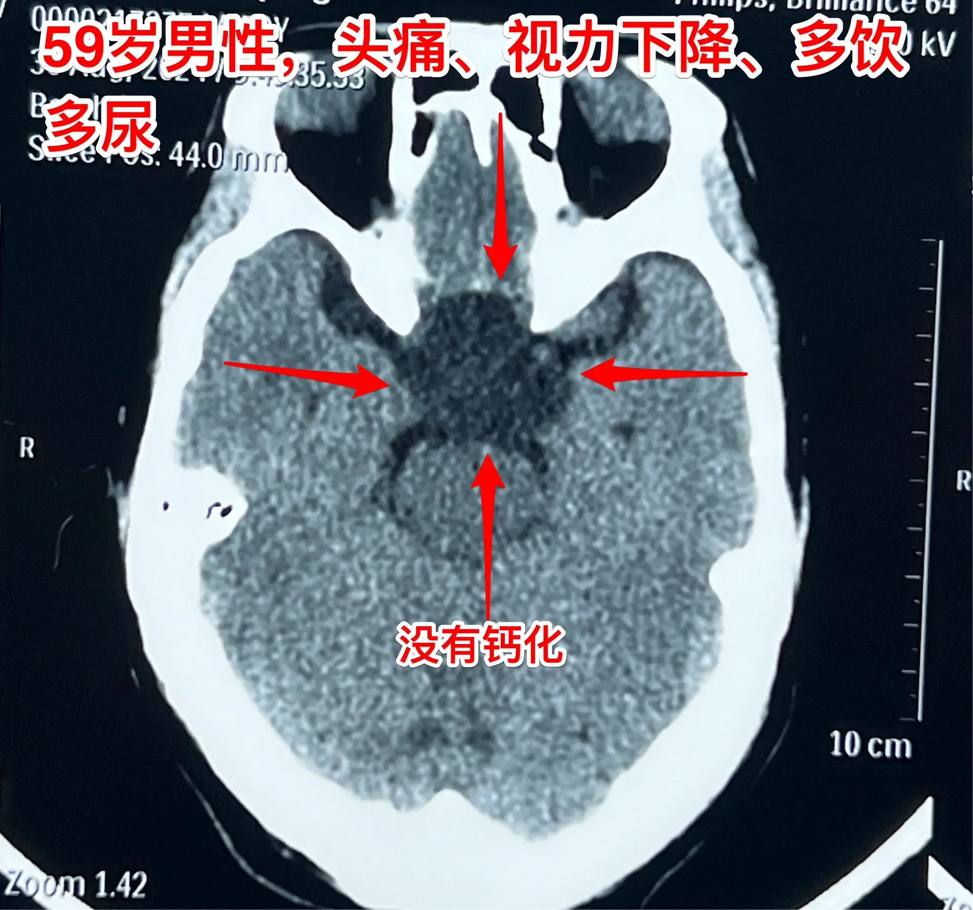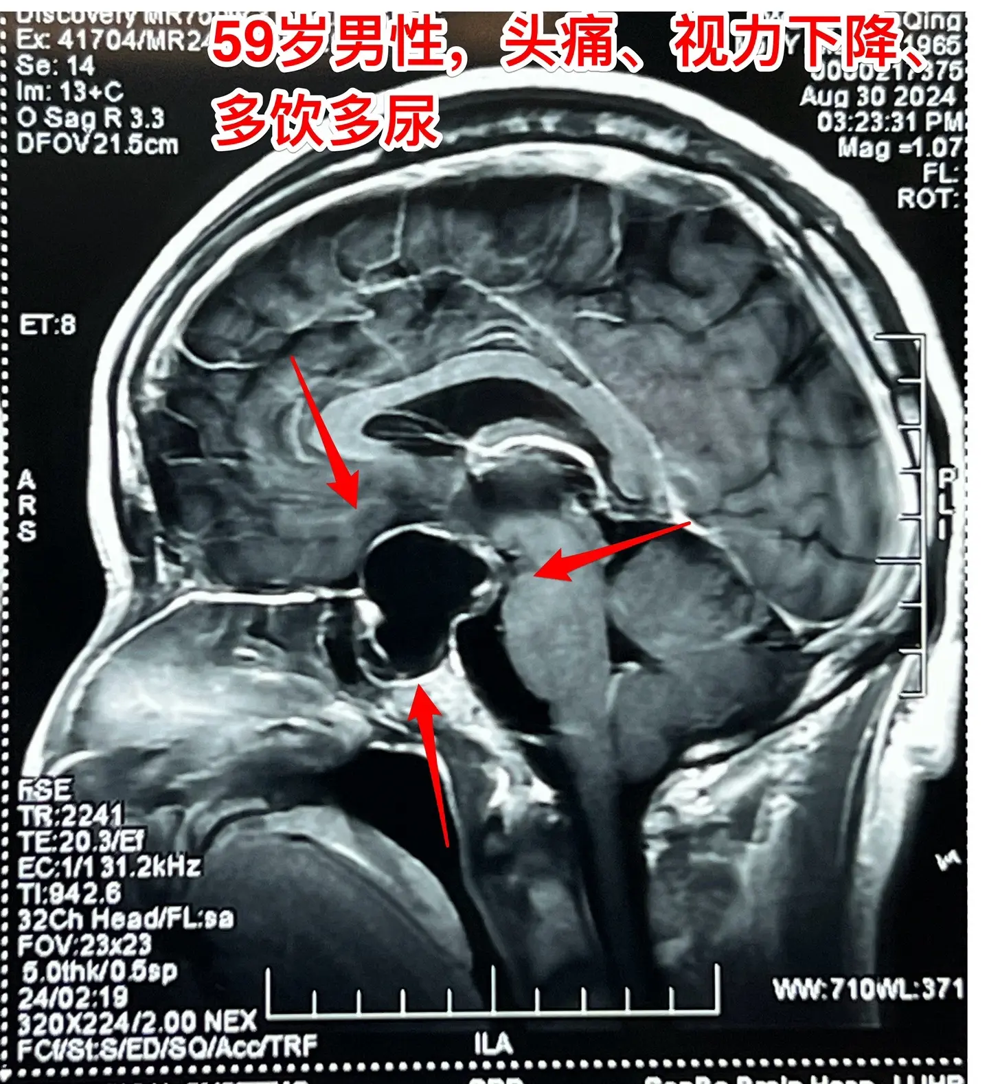头痛、视力下降、多饮多尿、体重下降。59岁洛阳市男性,近三年感头痛,近...