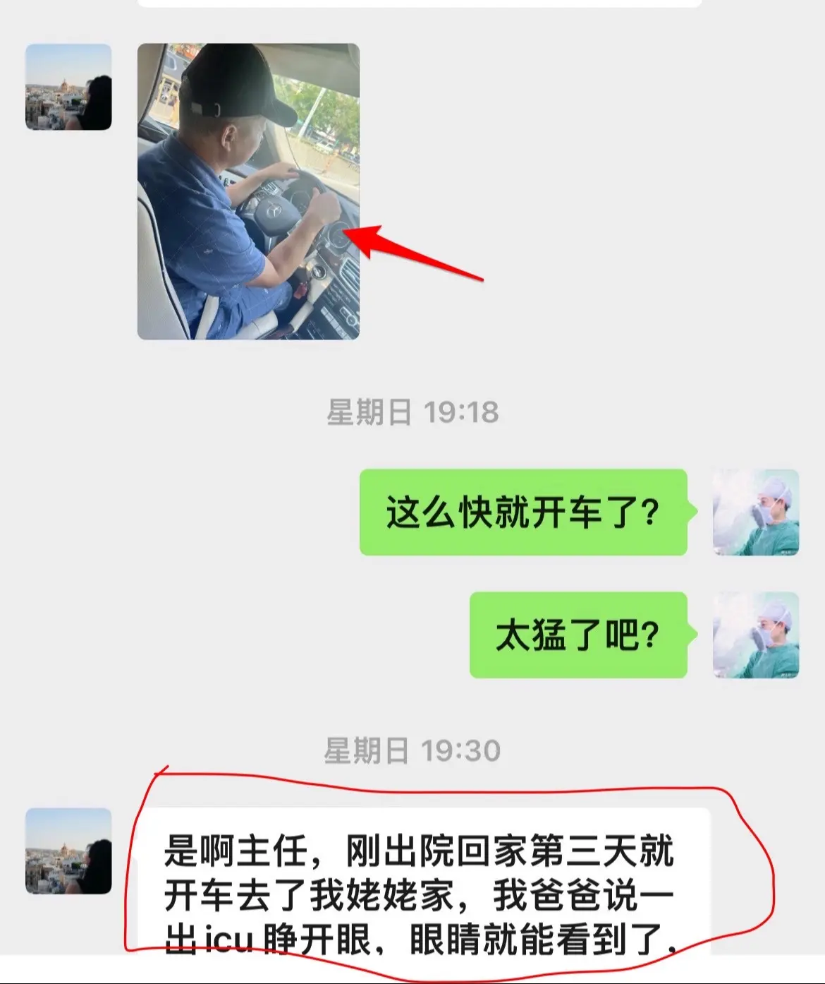 9月8日患者女儿和我联系,说患者出院三天就开车了。我告诉她,需要复查视力和视野,如果视野有缺损,开车是有风险的,不适合开车。