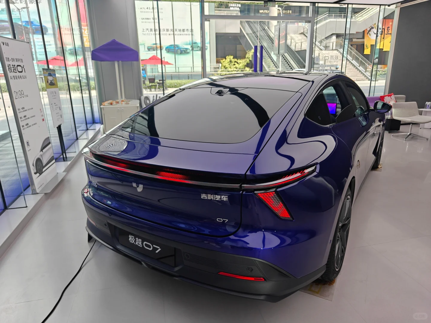 极越07,颜值,空间,做工,配置各个维度都不错……尾部的吉利汽车标识...