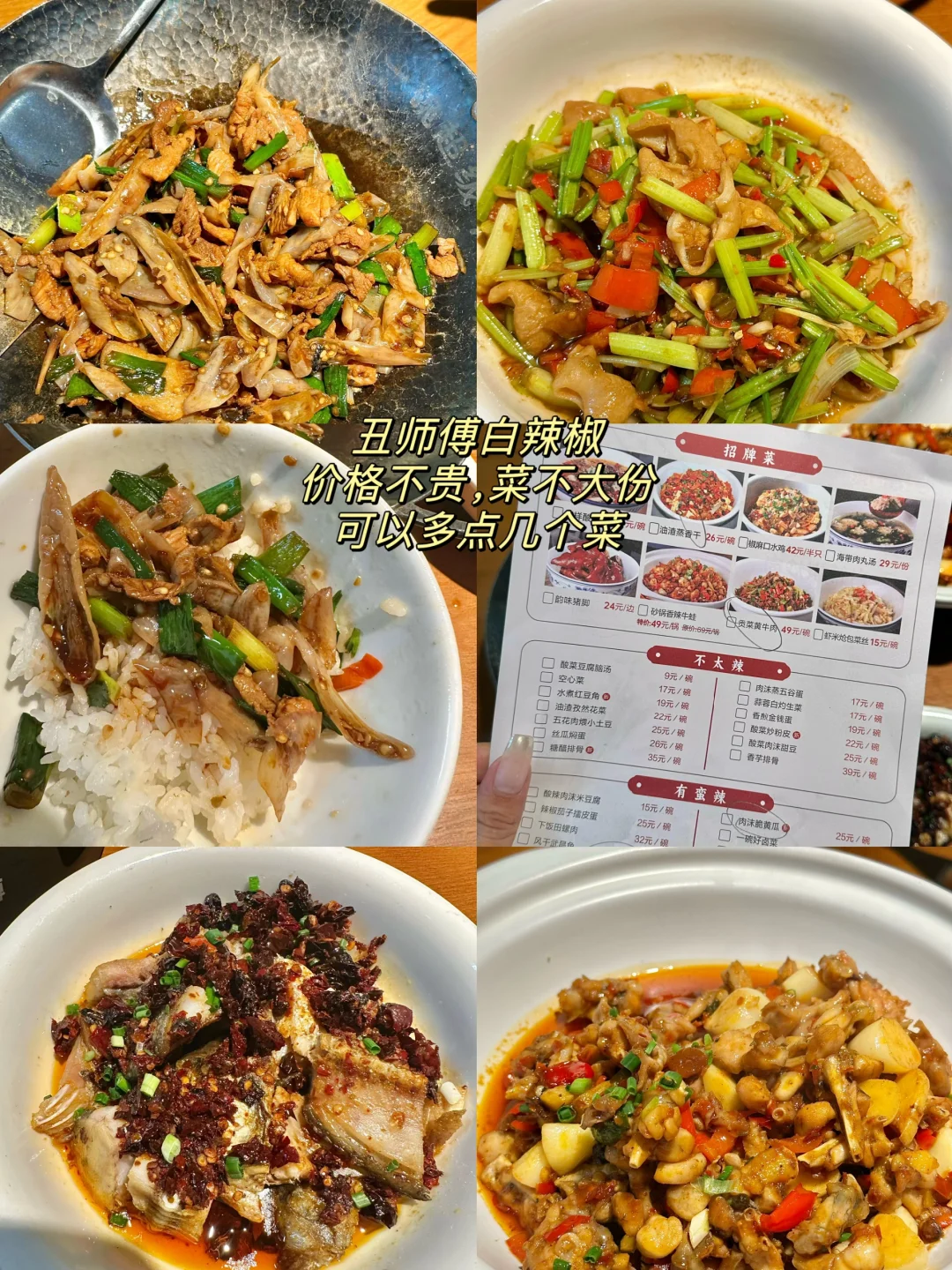 【丑师傅白辣椒】价格不贵,菜不大份,可以多点几个菜,辣度始终,辣椒炒肉和芹菜肥肠我真的,每次都点,好香好香