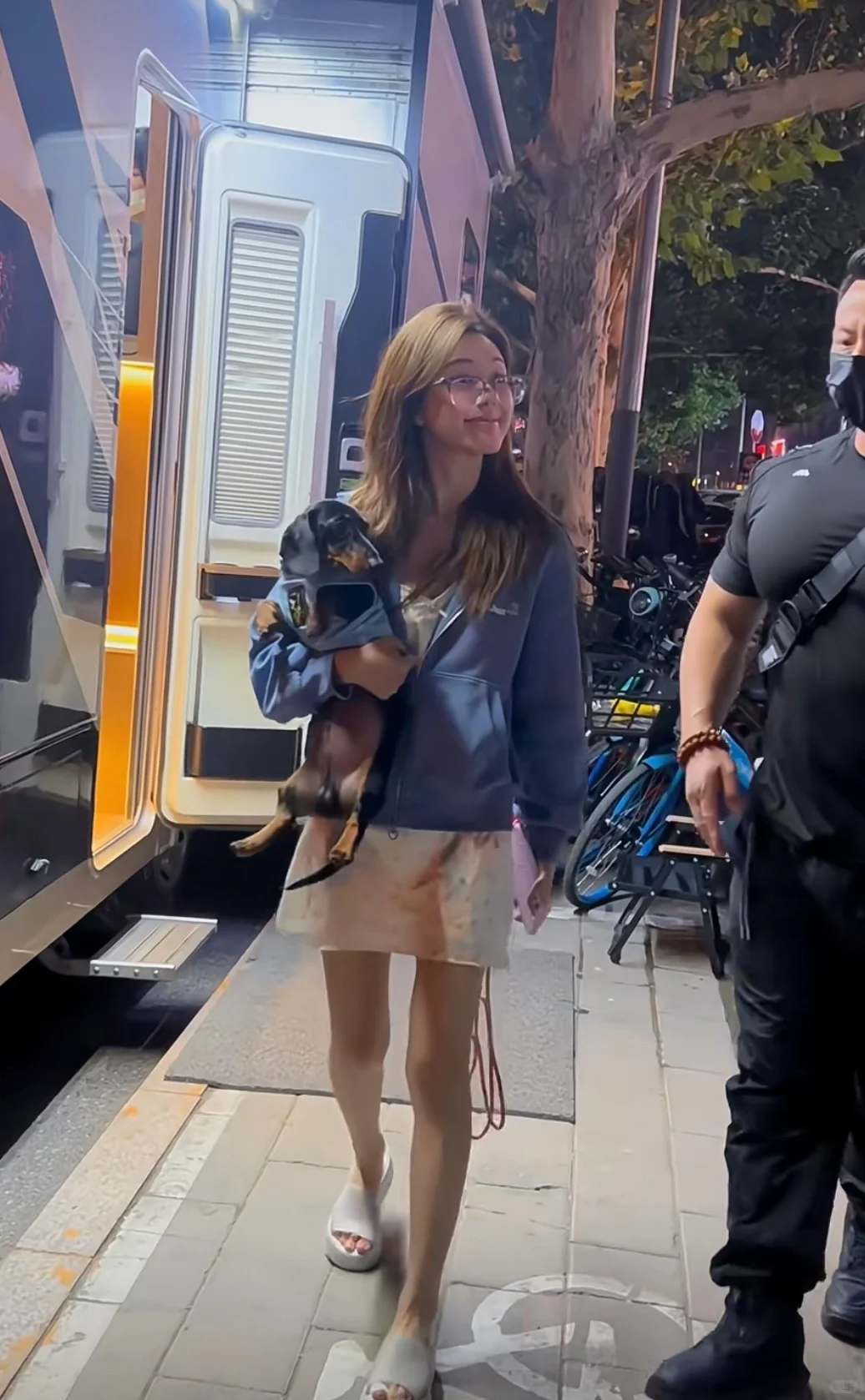 赵露思真的好爱她的狗狗,上班下班都可见她随手抱着。 这次也一起带去了米兰,还安排了专属狗包,容量超大还时尚,我只能说“点点”和“doe”不要太幸福啊!