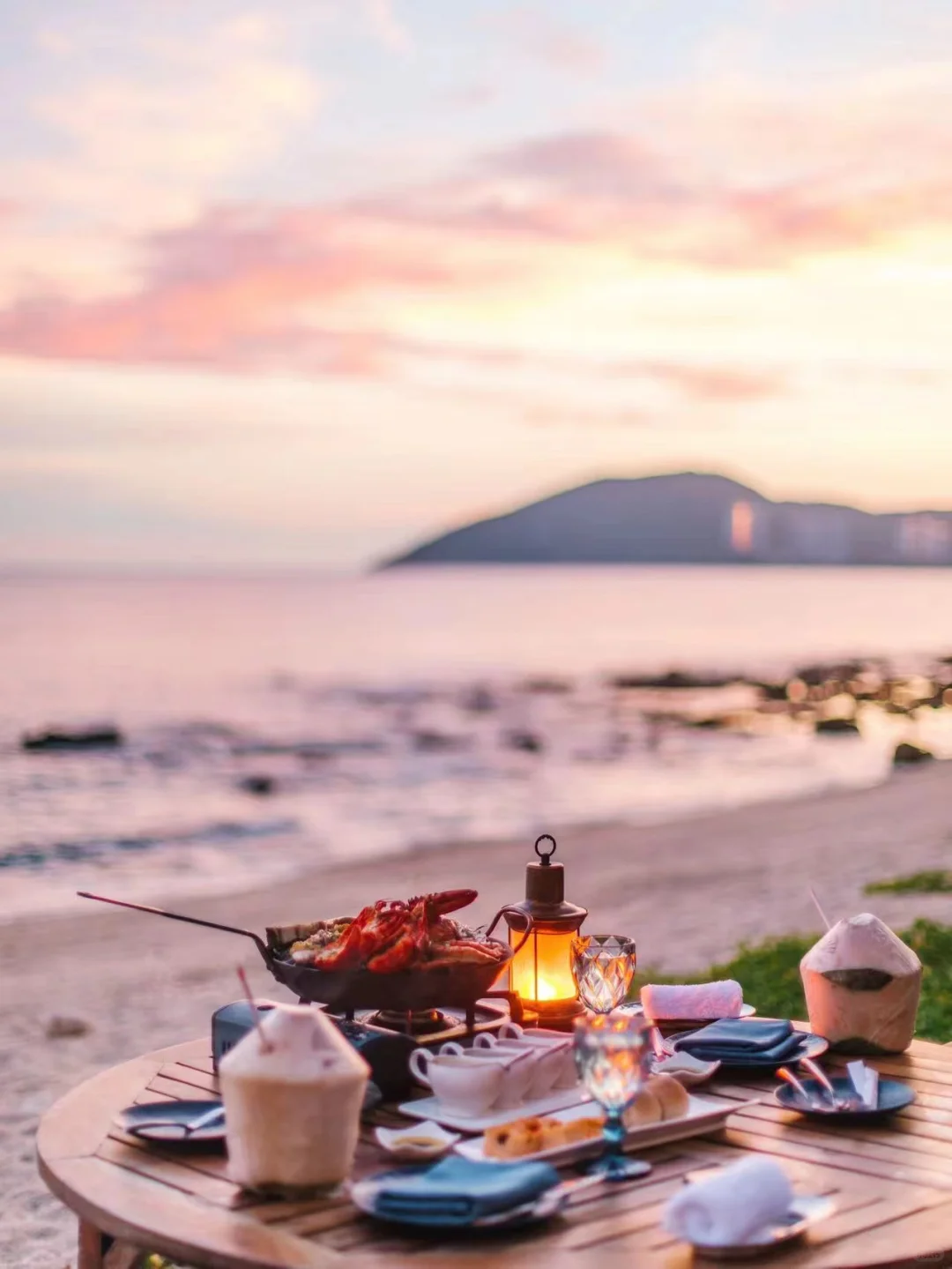 想要浪漫氛围更上一层楼,那在日落时分,白沙滩上的海上秋千🌊、主楼二层的日落酒吧、绝美日落的海角轩餐厅……与椰林海景为伴🏝,一同跌入这日落油画中