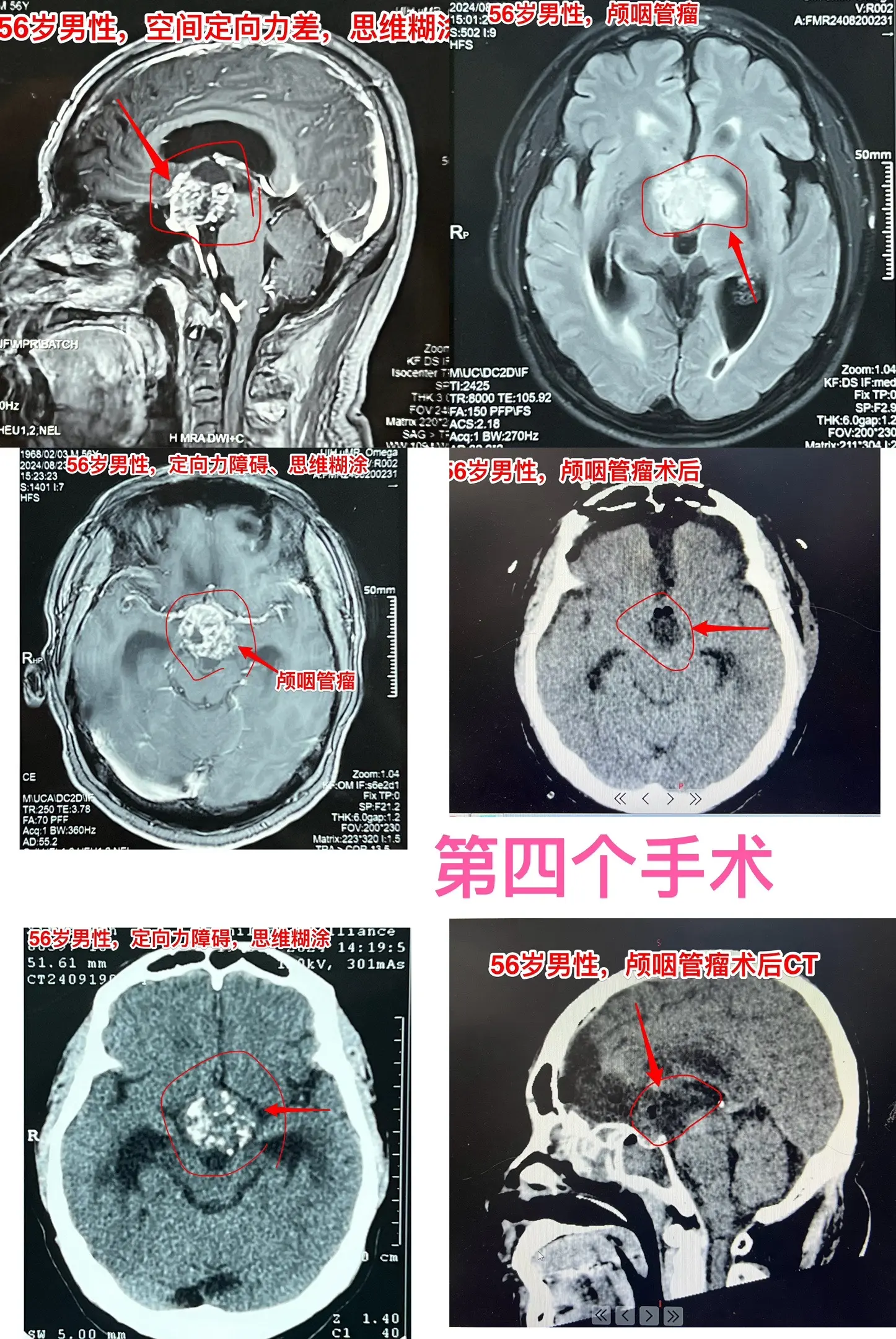 第四个结束的是56岁男性,辽宁省人,颅咽管瘤。曾经两次出门后找不到家门了,思维有点糊涂,都是和家人语言交流还没有明显障碍。手术很艰难,到今天凌晨手术才结束。今天看见病人神志清醒,四肢活动无障碍。