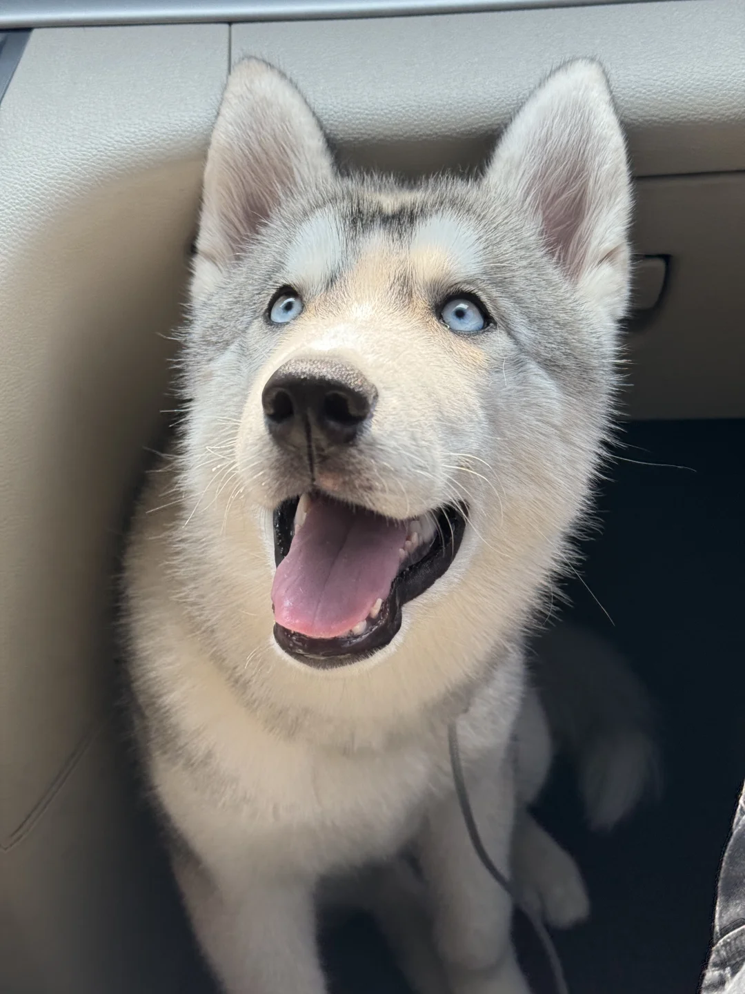 一坐车就知道出去玩啦 乖乖等 好像个小宝宝