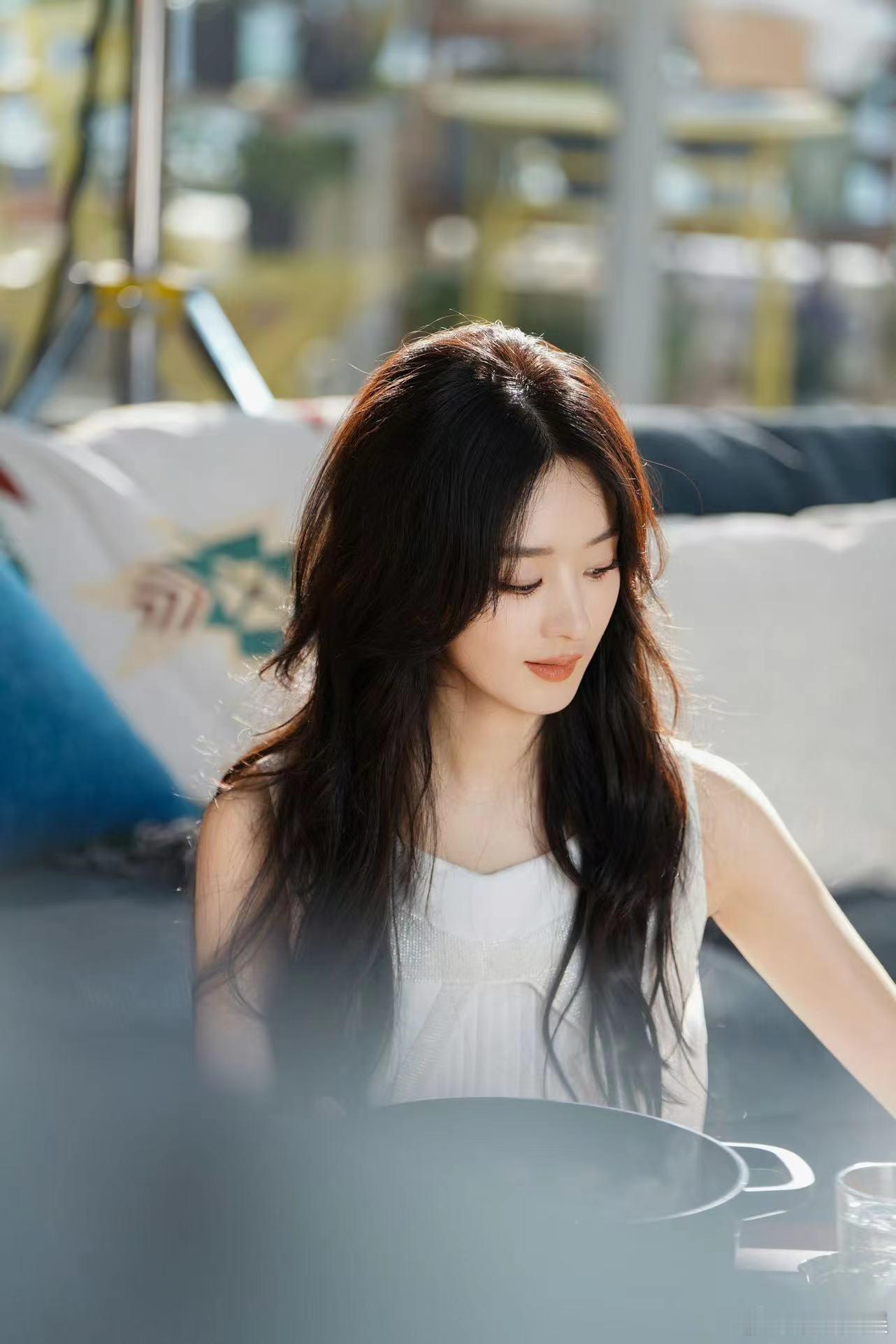 #赵丽颖纯蓝吊带look##长发赵丽颖限时回归#赵丽颖长发回归,纯蓝吊带裙尽显魅力。工作花絮动人,嘟嘴模样可爱。她的美丽总是令人心动,期待她更多精彩表现。