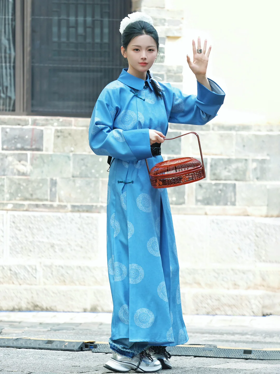 杨超越录制综艺《盲盒旅行局》,身穿蓝色古装长袍,上脚搭配GGCC厚底老爹鞋,明媚又动人,私服搭配老爹鞋时髦感拿捏,这样的杨超越多来几份!