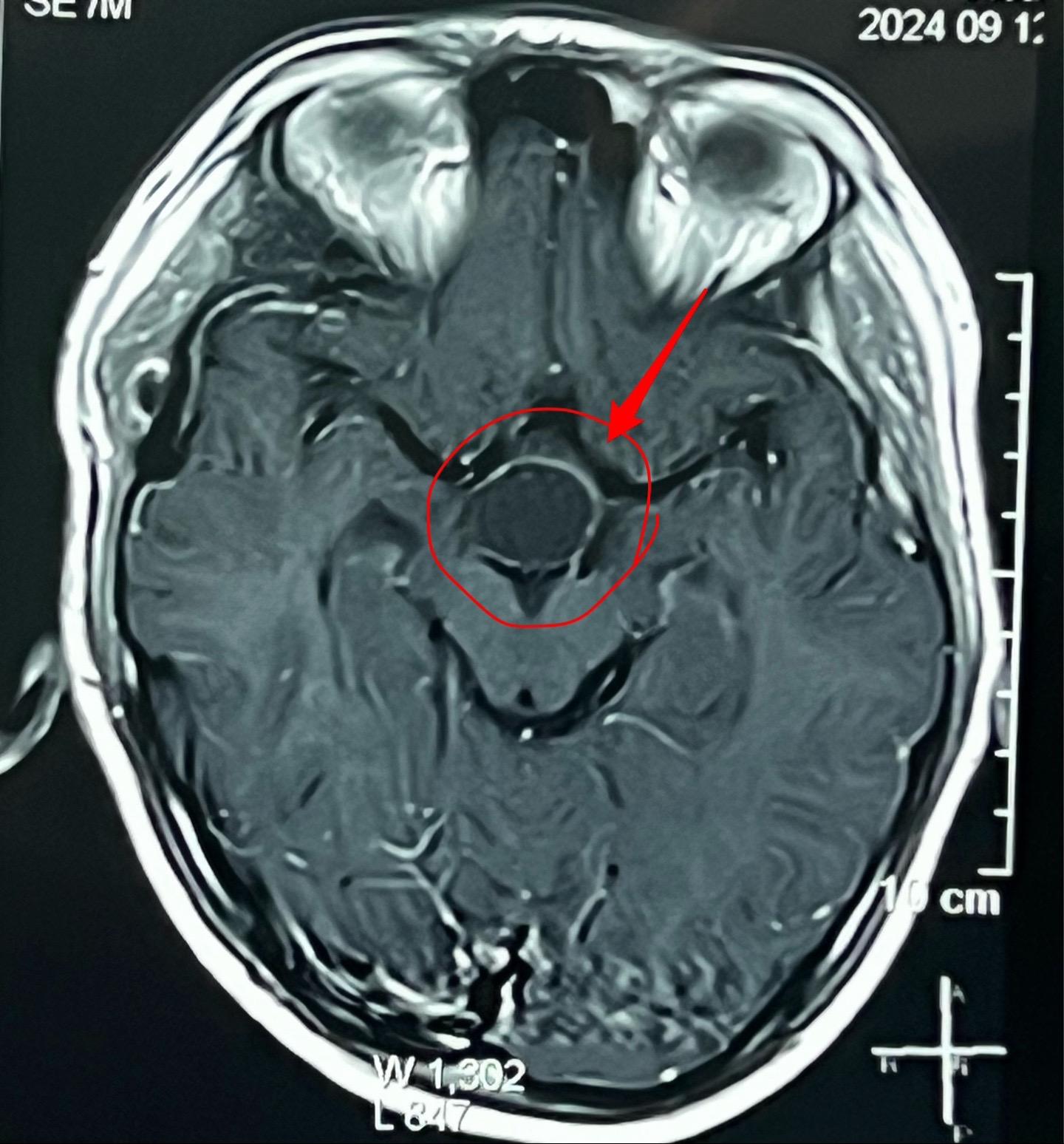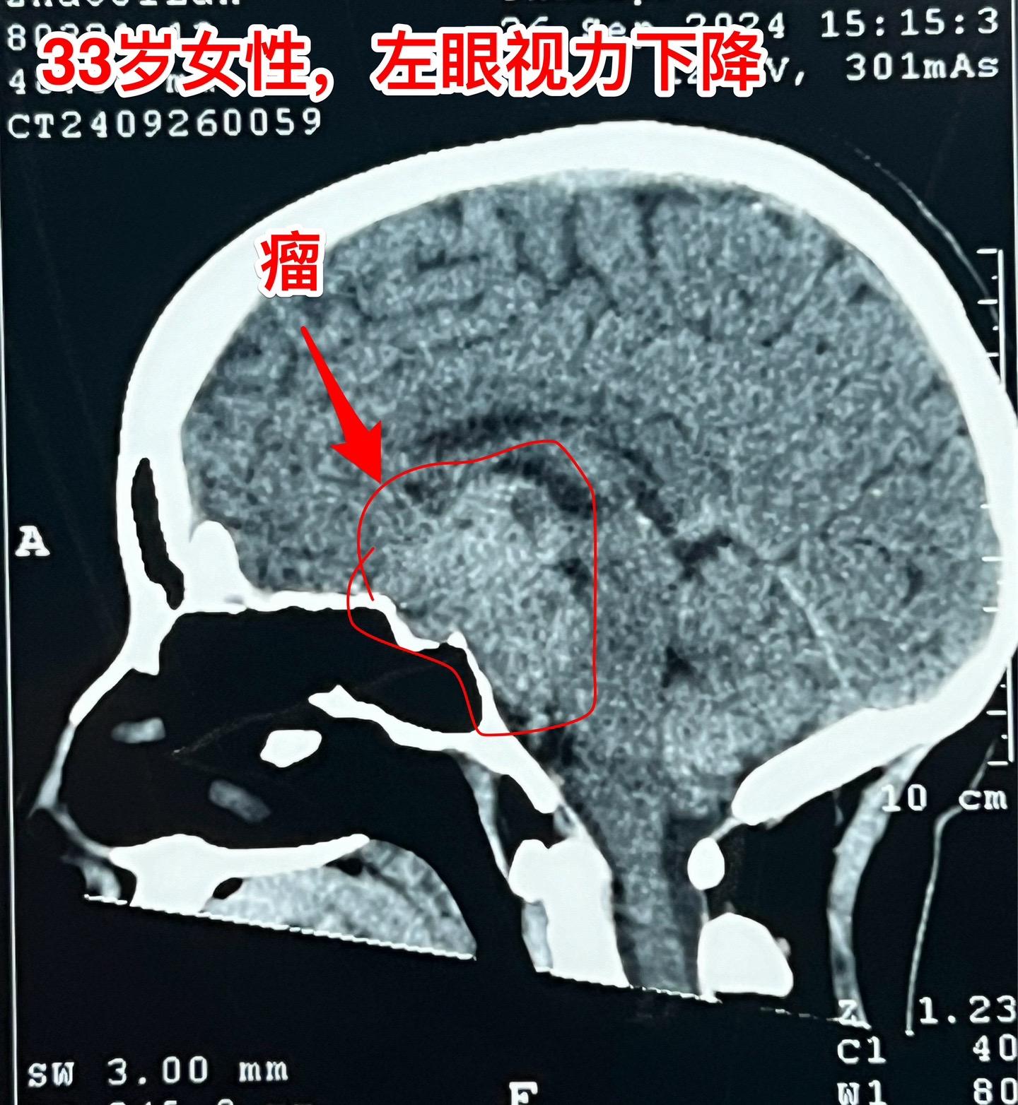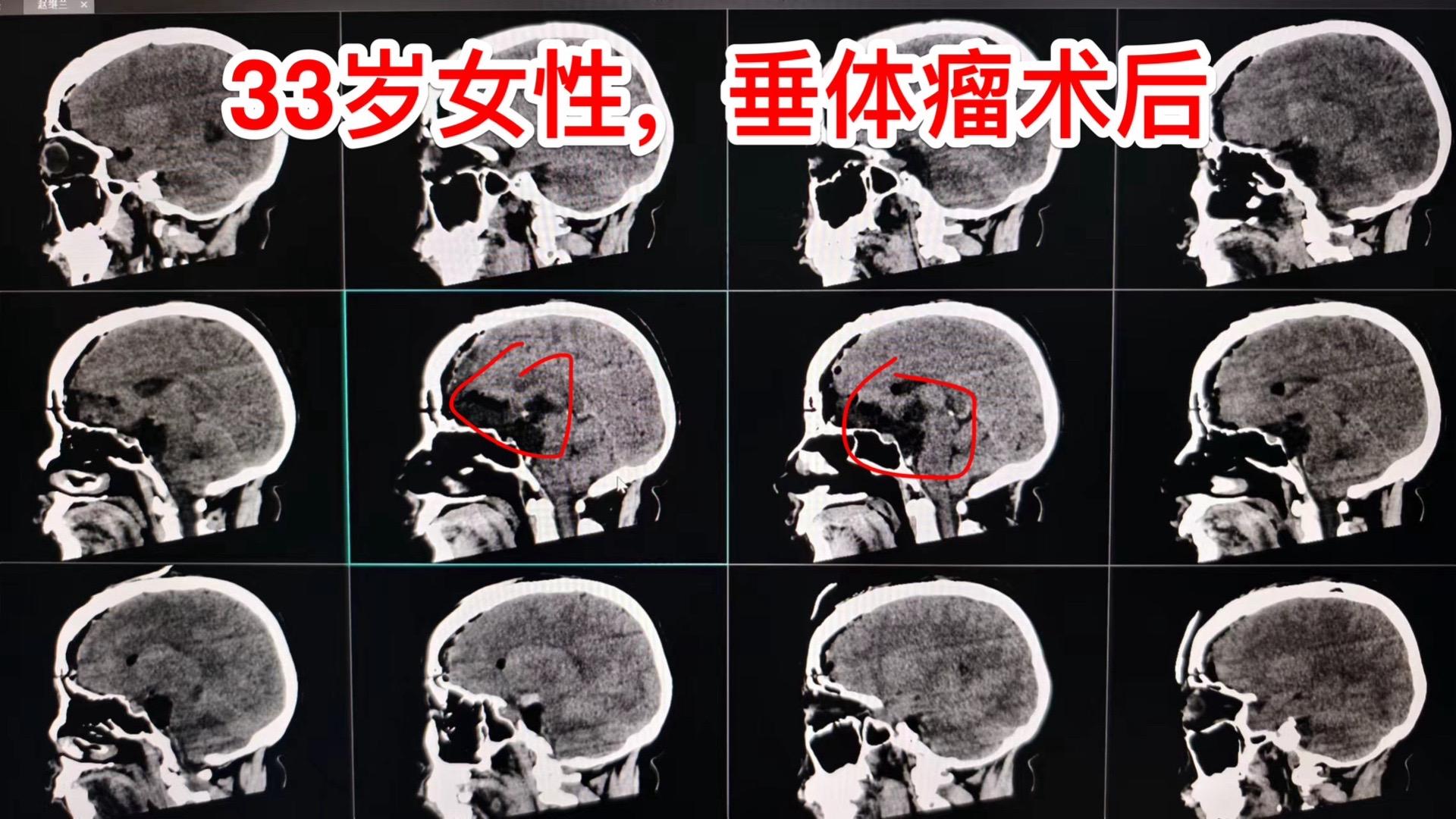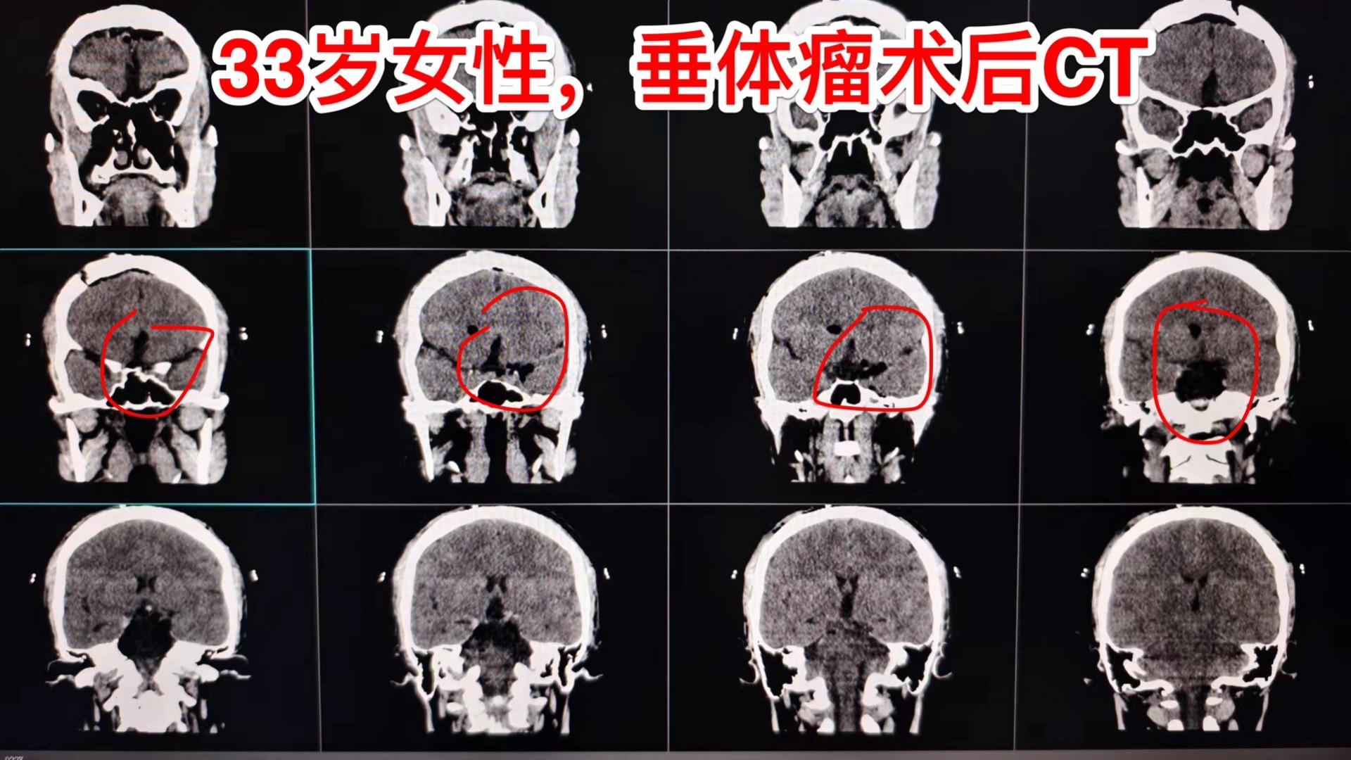 国庆节长假后第一天完成两个手术。一个手是33岁女性,来自云南省香格里拉。因左眼视力下降,到医院检查发现鞍区肿瘤,怀疑是颅咽管瘤。病人没有内分泌功能障碍。影像学上肿瘤是实性的,没有钙化,而且可以看见垂体信号。到底是什么肿瘤呢?今天手术中取肿瘤标本作快速冰冻病理检查,报告是垂体瘤。肿瘤得到完全切除,手术后病人视力好转了。
