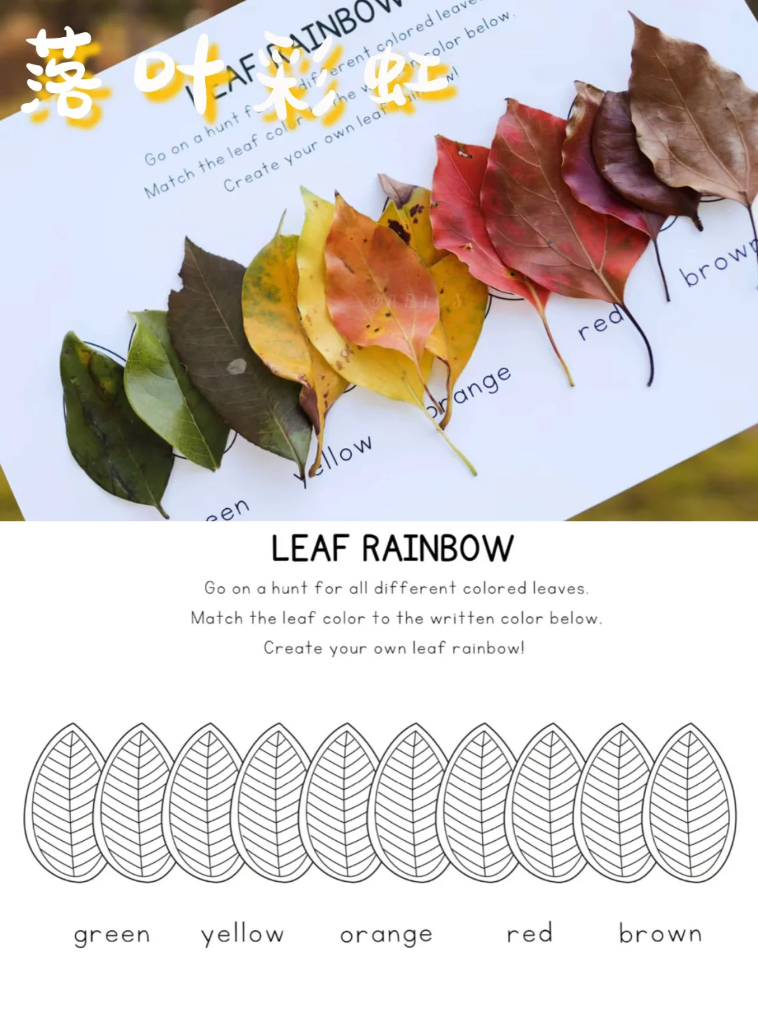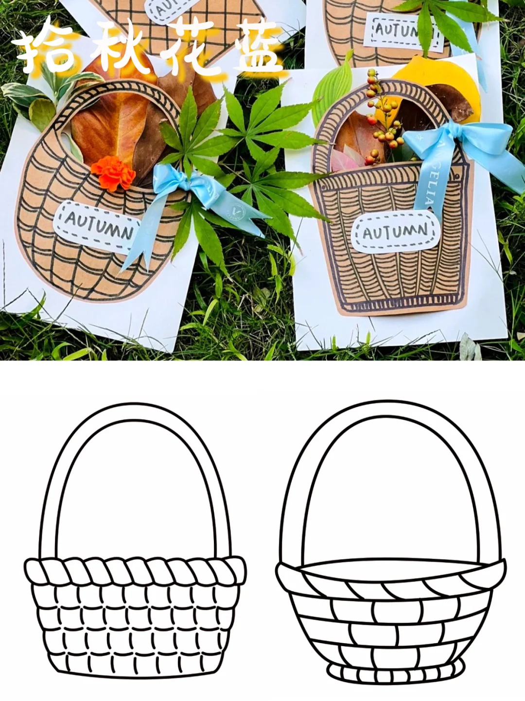寒露已到,秋高气爽,蕞适合户外的季节到啦! 很多爸妈带娃户外不知怎么玩? 今天给大家安利10个亲测好玩的秋天自然小游戏 这个秋天带娃去感受大自然带给世间的馈赠吧❤️ · 🌟【拾秋花篮】 1️⃣在牛皮纸上画出花篮 2️⃣剪下花篮,涂上颜色 3️⃣背面边缘贴上双面胶 4️⃣粘在白色卡纸上就可以插花装饰啦! - 🌟【树叶狮子】 1️⃣找一块硬纸板,简单地画上狮子🦁的头等 2️⃣让孩子沿着圆形轮廓贴一层双面胶 3️⃣搜集漂亮的叶子贴在狮子的脸上 - 🌟【树叶小怪兽】 1️⃣捡拾形状颜色不同的落叶 2️⃣准备了大小不一的小眼睛和粘土 3️⃣用树叶在卡纸上粘贴 4️⃣引导孩子发挥想象力刻画小怪兽👾 - 🌟【树叶蝴蝶】 1️⃣用纸板裁剪一个蝴蝶形状 2️⃣将树叶按颜色分类摆放 3️⃣将树叶按红色、绿色、黄色一圈圈贴树叶 4️⃣用超轻粘土做身体,画上条纹 5️⃣装饰嘴巴,触角和眼睛 6️⃣最后在背面粘一根树枝当手柄 - 🌟【落叶圣诞树】 1️⃣捡树叶:渐变绿为主,圣诞树🎄效果更加好 2️⃣卡纸卷成锥形:做的下摆更宽一点 3️⃣双面胶一卷一卷贴满锥体,把木棍和木桩固定好 4️⃣贴树叶:底部一层铺黄色🍂,上面慢慢过渡渐变绿叶 - 🌟【树叶喷绘】 1️⃣把喷壶中装上不同颜料加水混合 2️⃣捡一些形状各异的叶子 3️⃣把叶子粘在画纸上,喷各色颜料即可 - 🌟【秋天的颜色】 1️⃣在A4纸上画出几种秋天的色板打印出来🎨 2️⃣和孩子一起找到相应颜色的树叶花朵和果实,用双面胶一一贴上就可以✌️ - 🌟【落叶彩虹】 1️⃣在画板或卡纸上涂出秋天树叶变化过程的色彩,从新生的绿色到成熟的棕色 2️⃣去大自然中收集秋天树叶的色彩 3️⃣对照画板上的颜色贴出对应色彩的落叶🍂 - 🌟【秋天降落伞】 1️⃣准备好透明伞一把,树叶,双面胶若干卷🪀 2️⃣把双面胶按照相同的方向贴满伞面,然后把树叶依次沾上去就好啦,非常简单! - 🌟【落叶拓展】 1️⃣让孩子感受树叶、天气、色彩的变化和层次感 2️⃣激发孩子的想象力,下次还能用树叶做出什么样的手工玩具呢❓