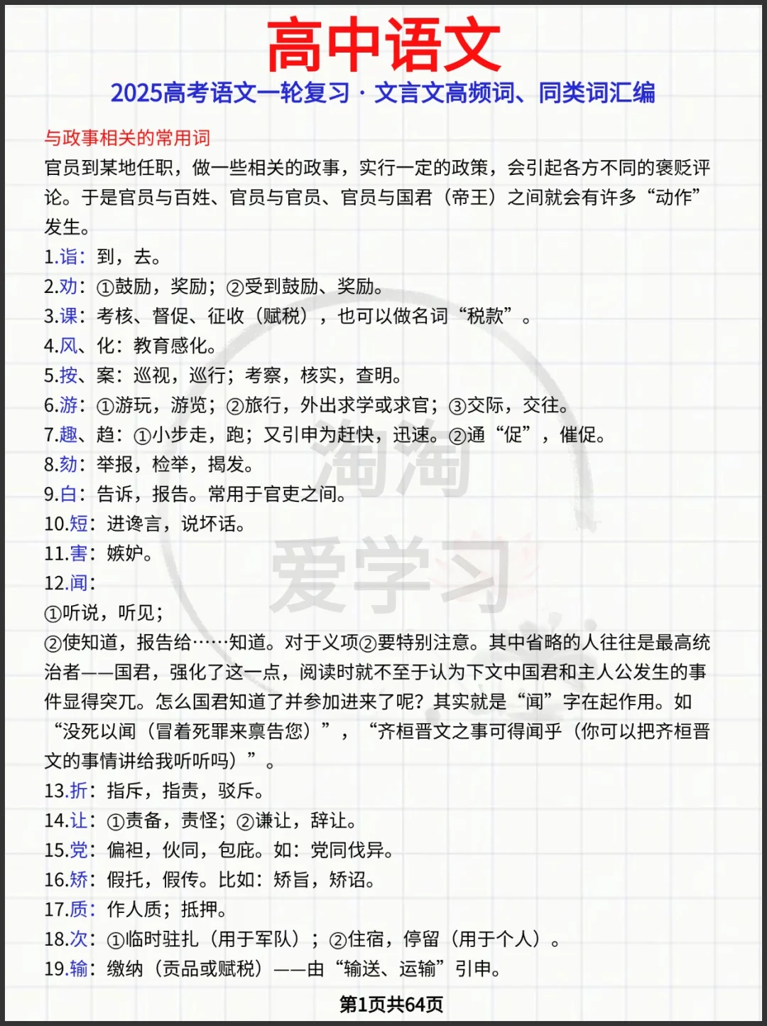 2025高考语文一轮复习·文言文高频词、同类词