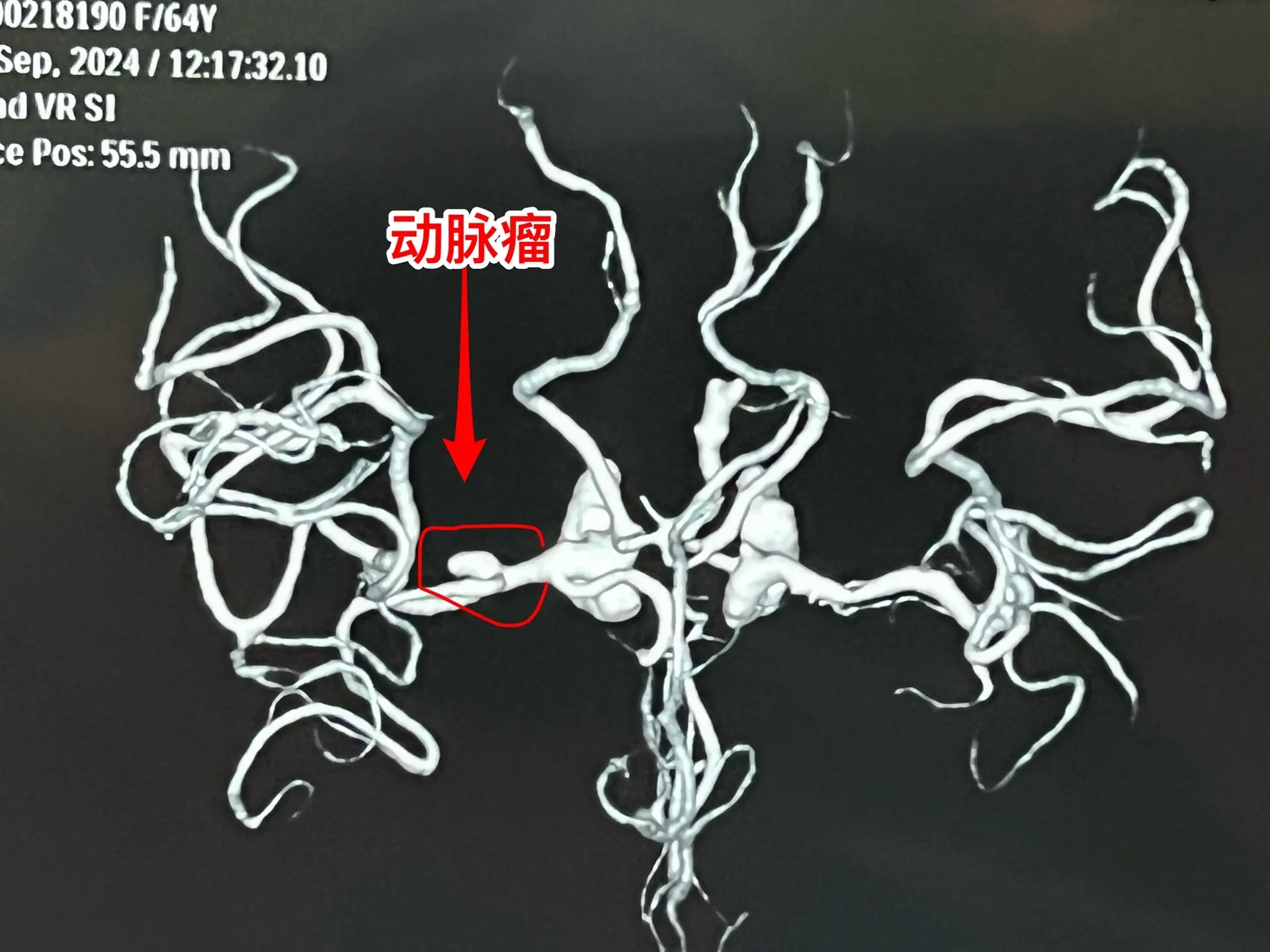 玉环市病人小脑出血后检查发现脑动脉瘤。64岁女性,浙江省玉环市人。4个...
