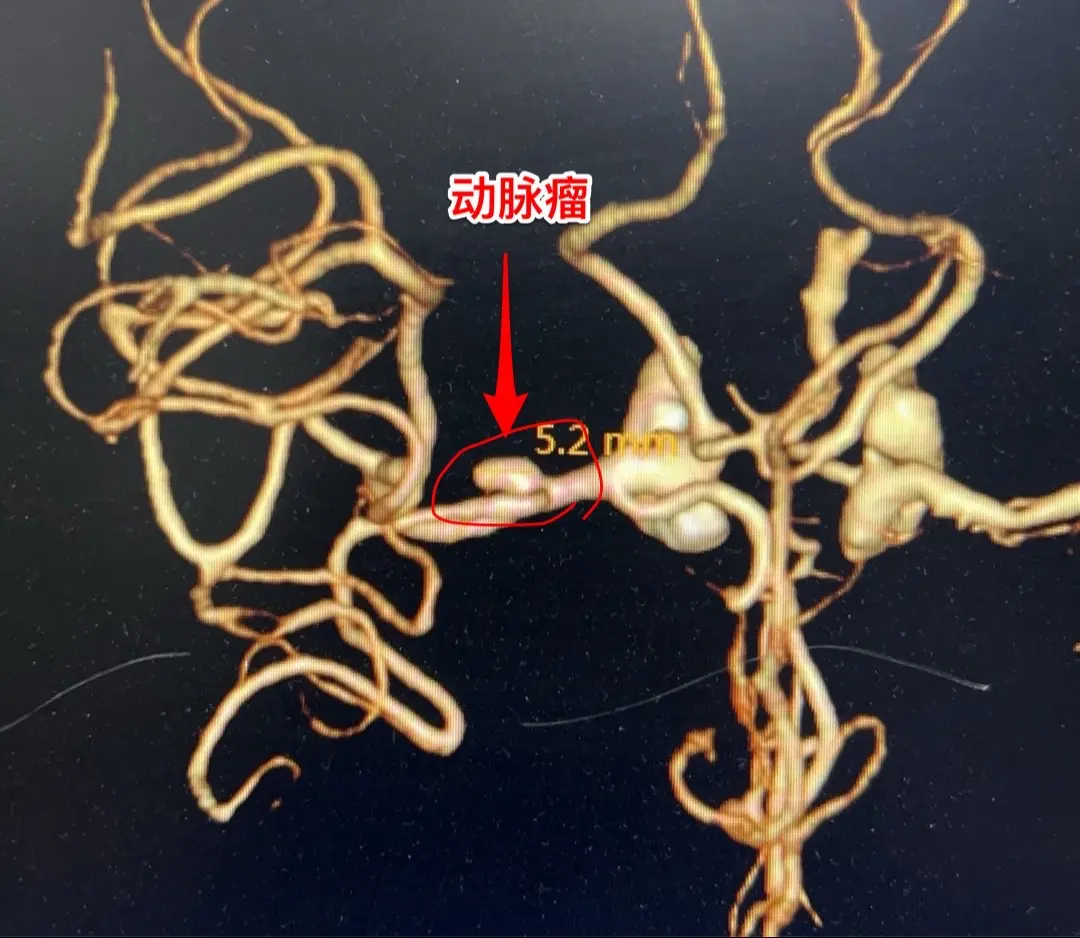 玉环市病人小脑出血后检查发现脑动脉瘤。64岁女性,浙江省玉环市人。4个月前突发小脑出血,在玉环市治疗后没有留下什么后遗症。但是作脑部血管成像MRA发现右侧大脑中动脉有个动脉瘤,报告中没有测量动脉瘤的尺寸。