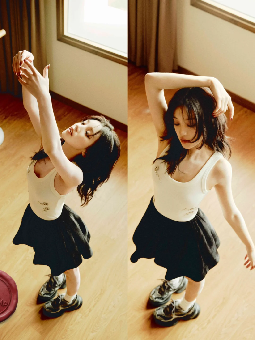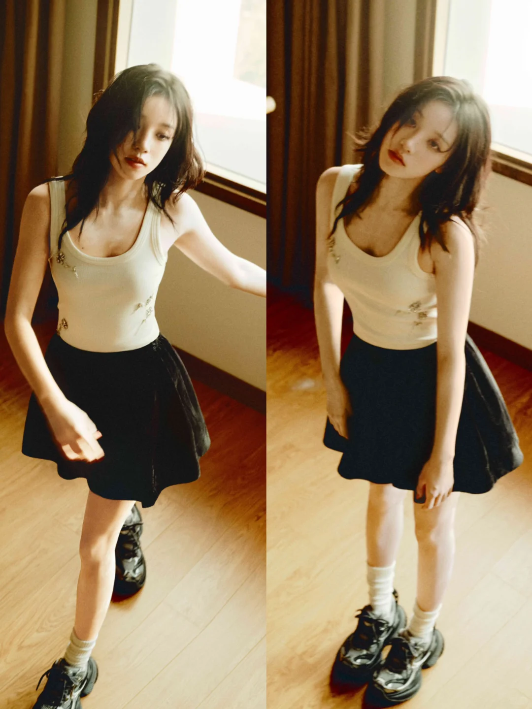 雨琦弟弟更新杂志新图啦,肉眼可见的乖巧又酷酷感。 白色背心搭配黑色蓬蓬裙,上脚厚底老爹鞋,这大长腿比例好吸睛,美得毫不费力!