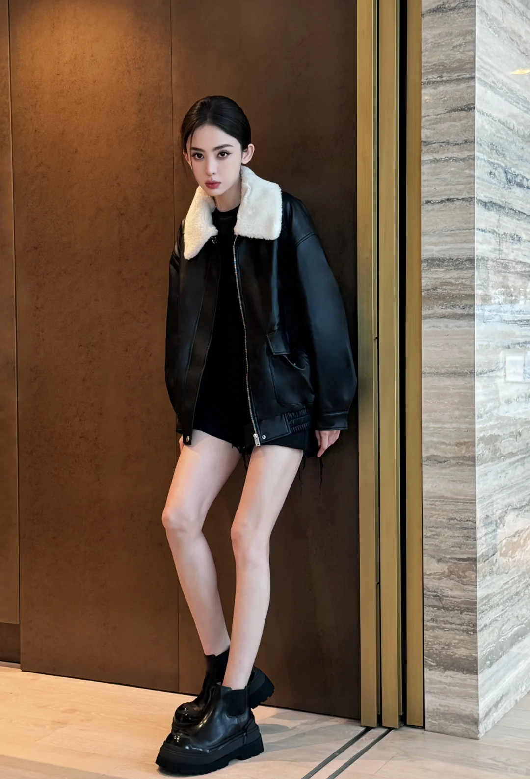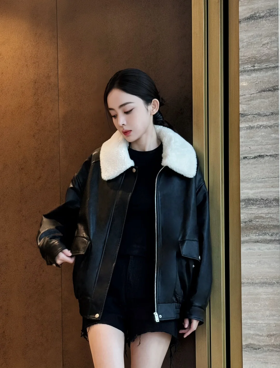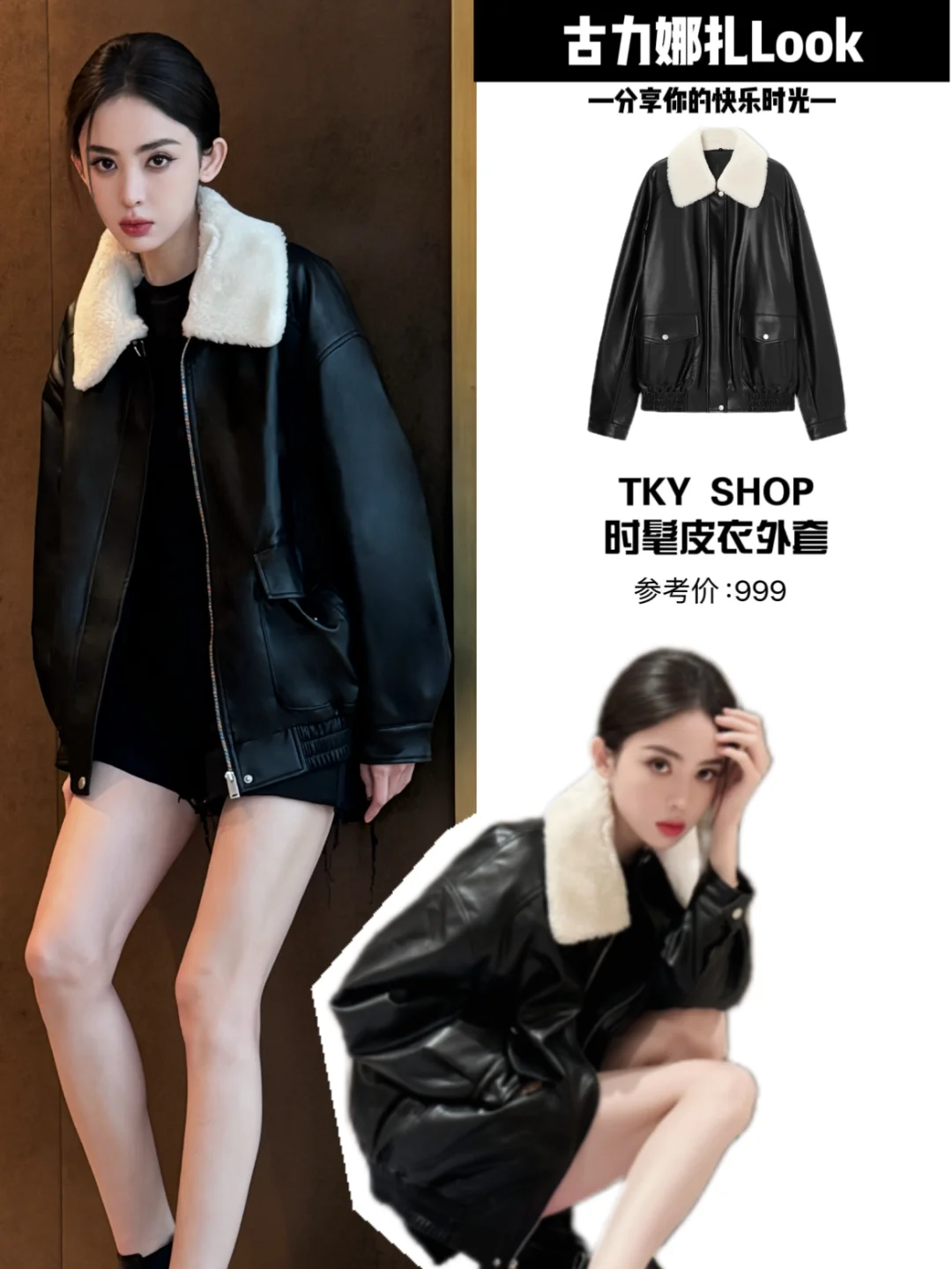 谁懂啊?古力娜扎天生美人胚子,时尚拍照持续输出美丽! 黑色白毛领皮衣外套酷里酷气的,秋冬季真的超适合All Black穿搭,和娜扎一起更新秋冬新衣,咱就同等的气场全开啦,我先get!