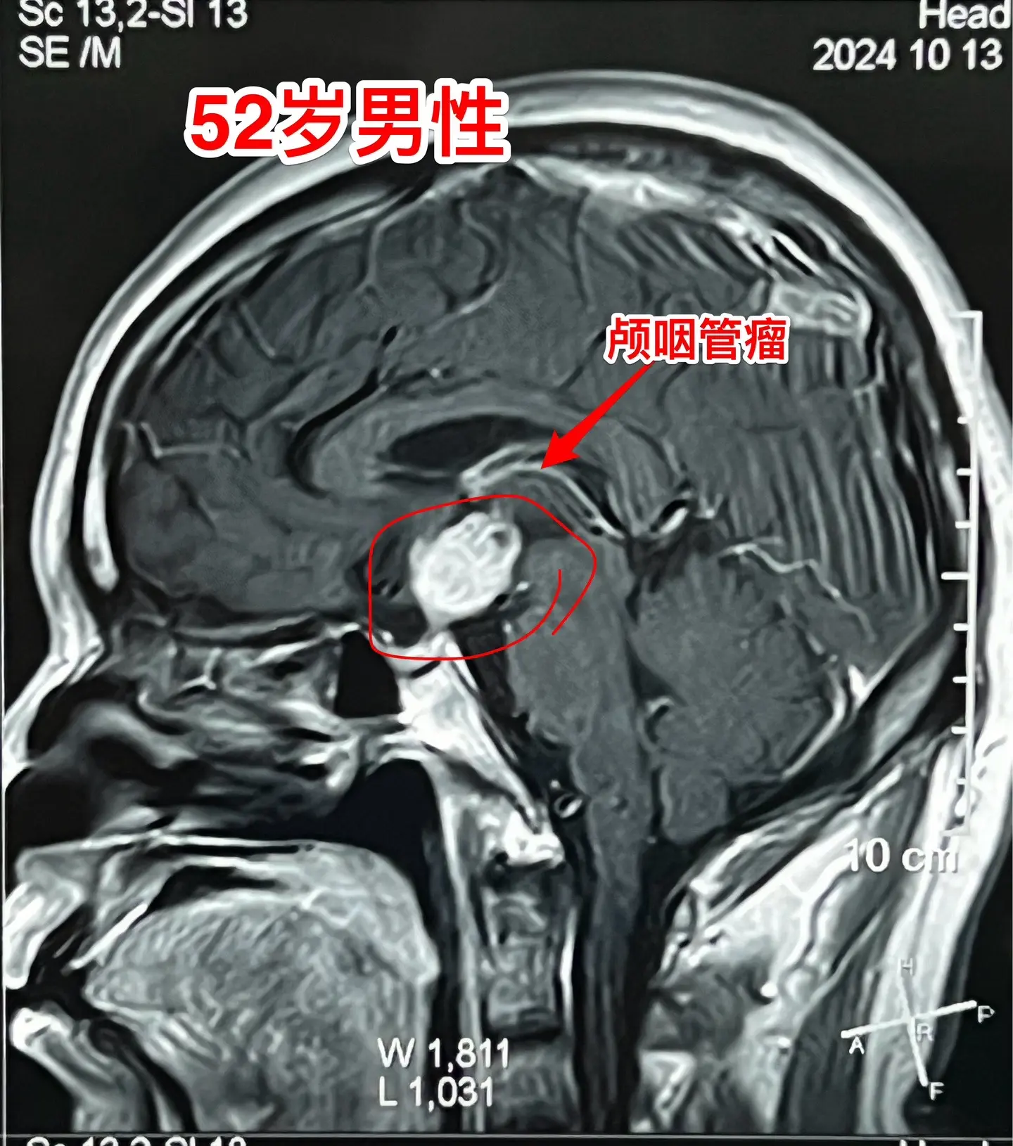 乳头型颅咽管瘤。52岁的重庆市男性,因为头痛到医院检查磁共振,居然发现...