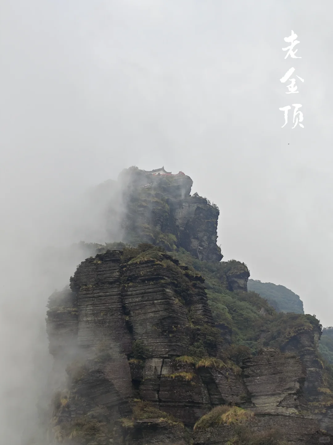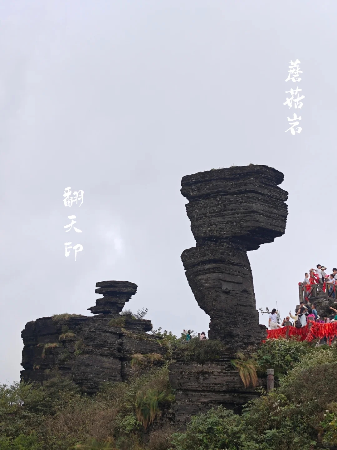 ✓最强观景平台:佛光普照台(在蘑菇岩前方的一个观景台)。虽然山上雾气很大,但是建议在这里多等等,会有风吹散云雾,可以乘机一睹两个金顶的真容。