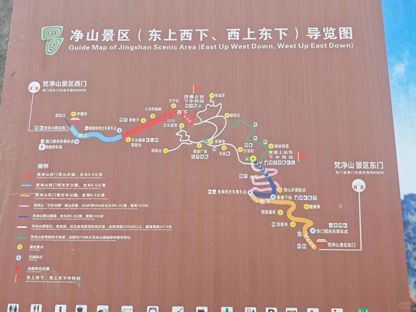 ✓这是条很重要!!!徒步的朋友走西门,走东门的朋友请选择索道上下。东门的山路极其费时费力,而且基本来不及上红云金顶。步行全程6.5公里(导航4.4公里未考虑坡度)6600阶,我下山花了3个小时,关键是山路台阶特别陡且坑洼,膝盖杀手,真的不要轻易尝试!中途还有野猴子打劫,有背包的一定要结伴而行!