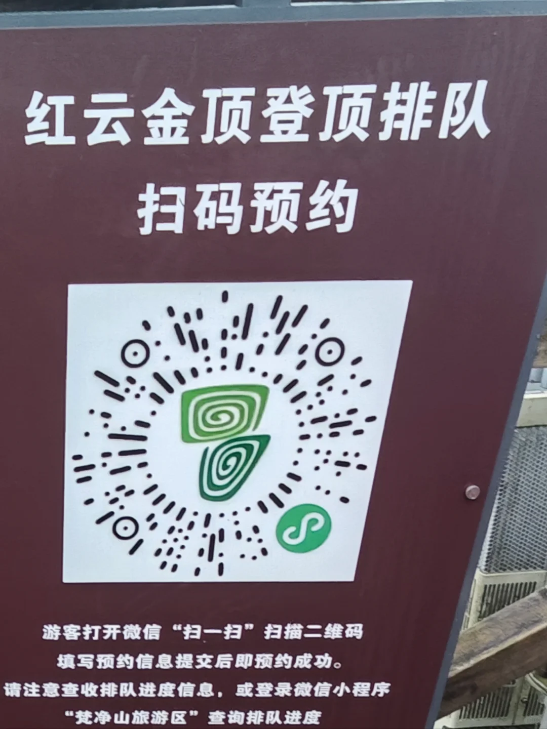 ✓红云金顶预约取号,过号不候。一般在索道中后程就进入预约信号范围了(最后附有预约码),如果是较早时段的可以蘑菇岩再预约。