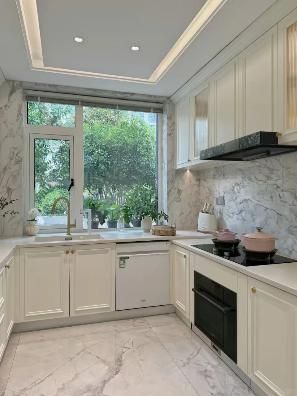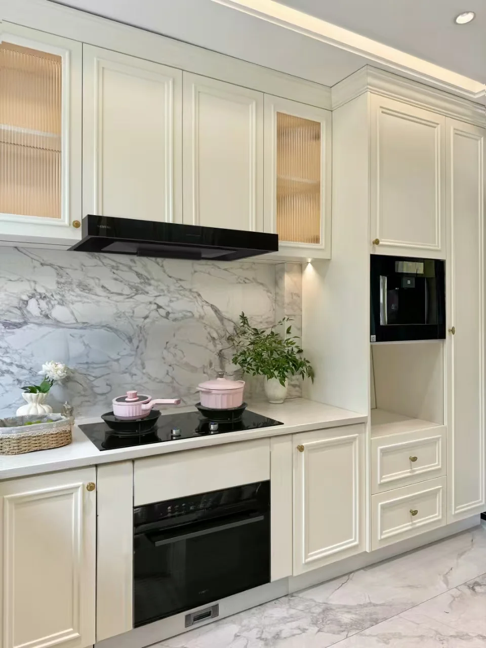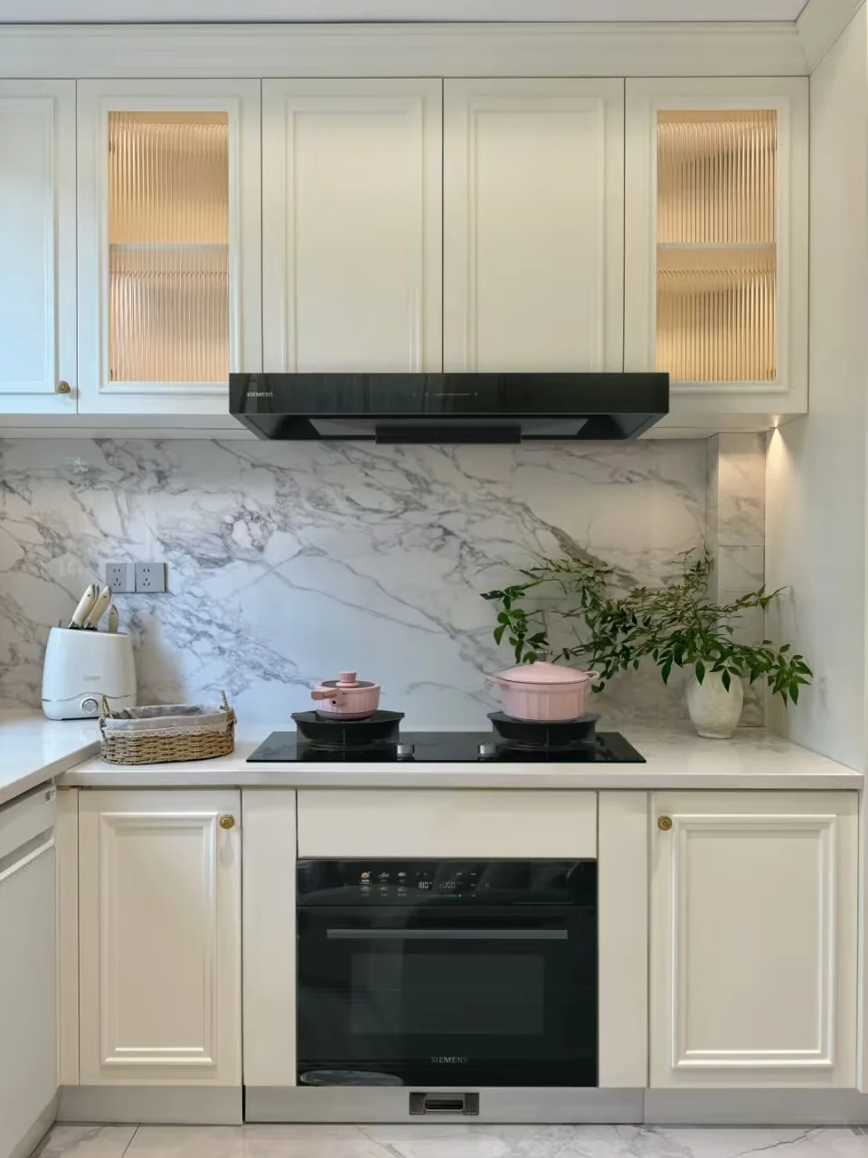🍃但也有后悔莫及的点,最大的遗憾就是厨房太小,没有给自己安装一台嵌入式微蒸烤箱,所以平时买各种小家电,什么蒸笼,空气炸锅,微波炉,迷你烤箱等等,搞得厨房不仅杂乱,还超级占空间,收纳柜里面也堆满各种小家电,每次做饭把小家电搬出来,备菜空间被挤占很不方便,所以这次装修新厨房,好好的规划了每一个家电的位置,并第一时间就给微蒸烤一体机留了空间。