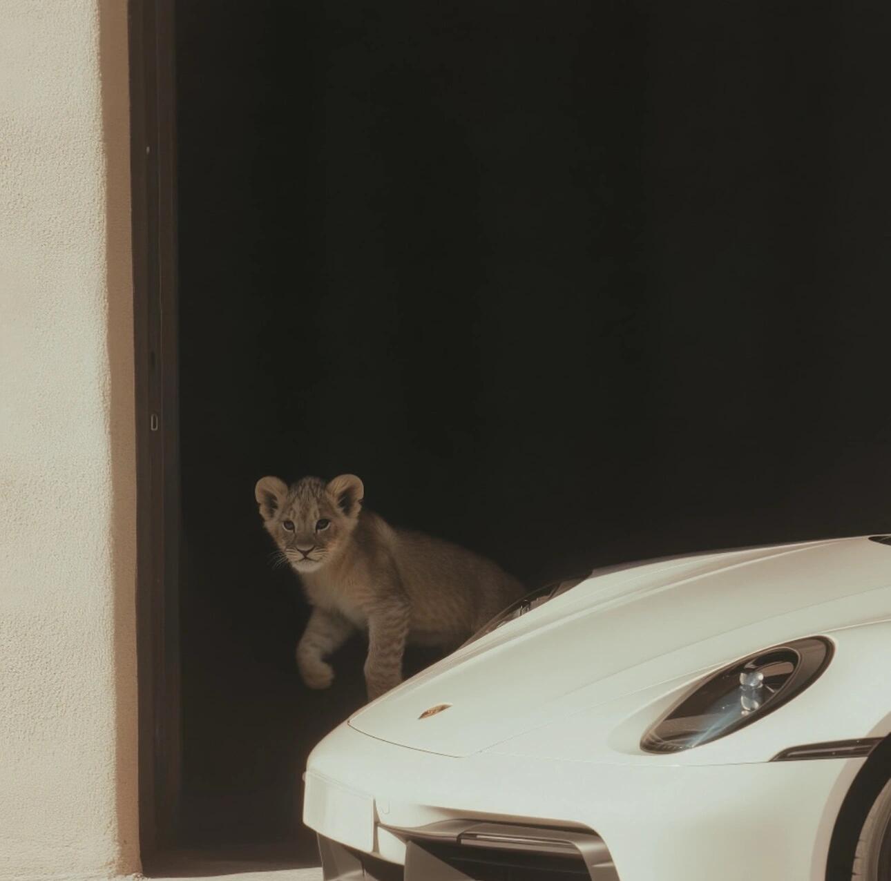 小狮子和它的保时捷,嗷呜[抱一抱]
