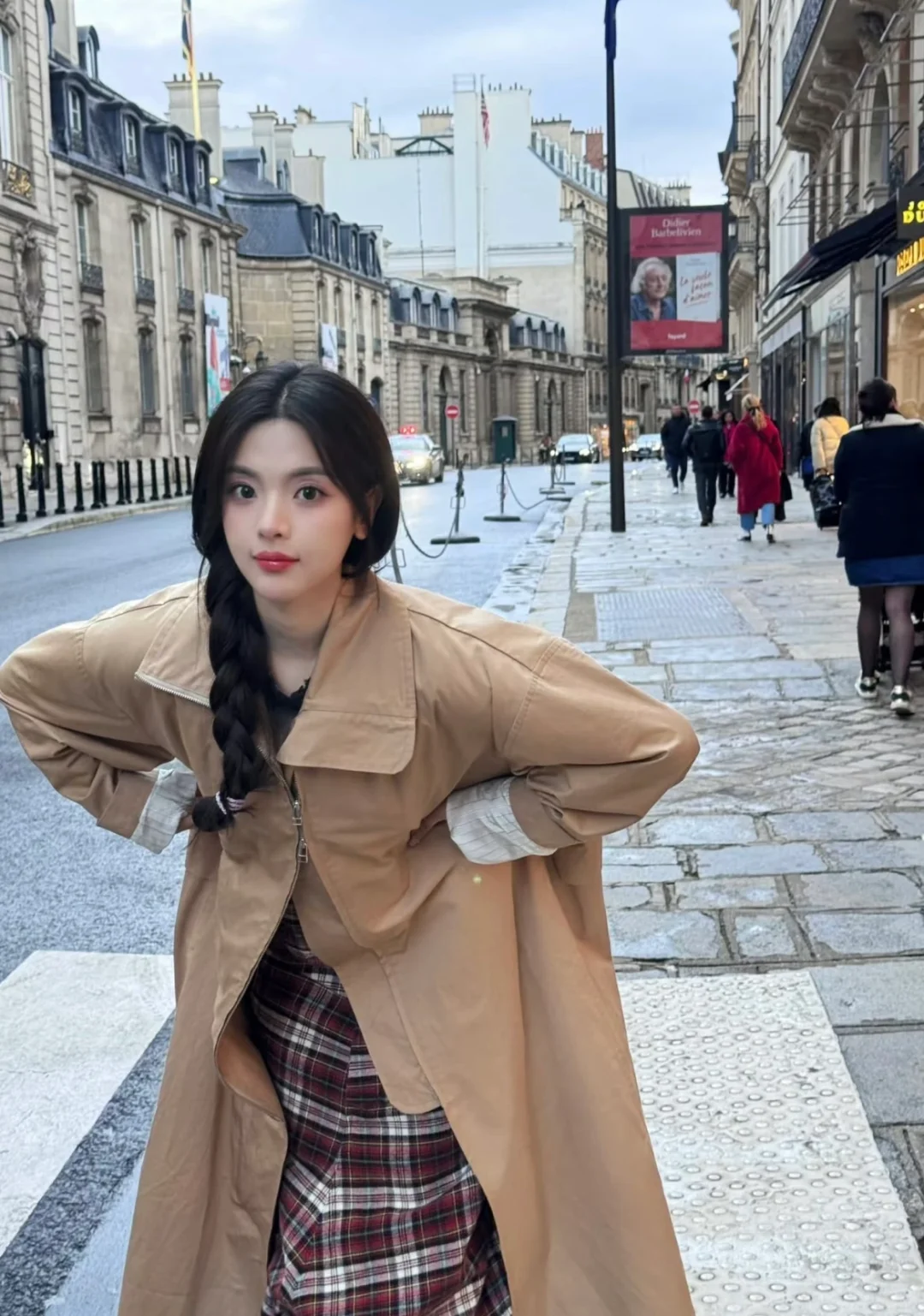 张天爱跟素人合影,胯真的好宽,大宅院似的
