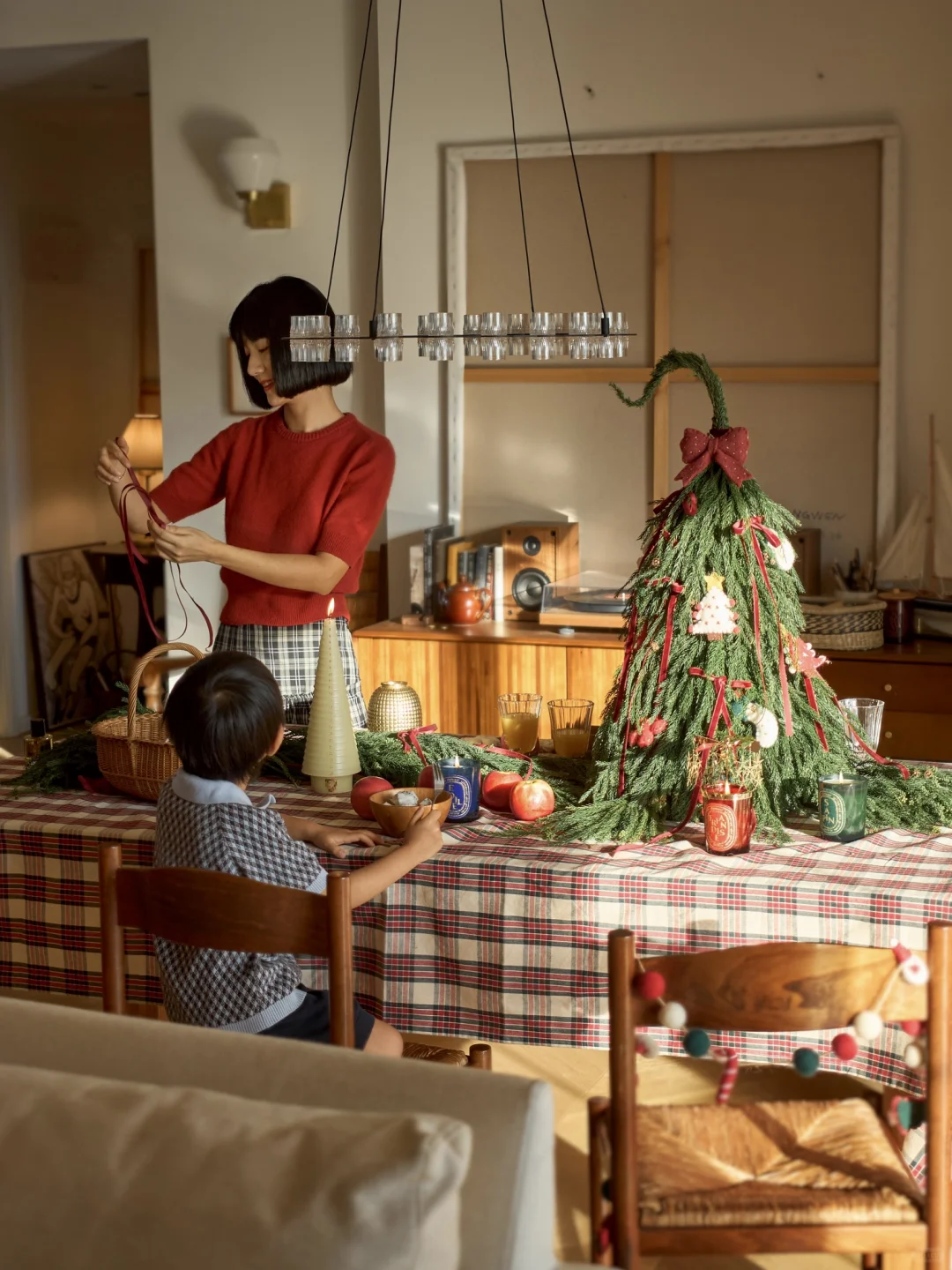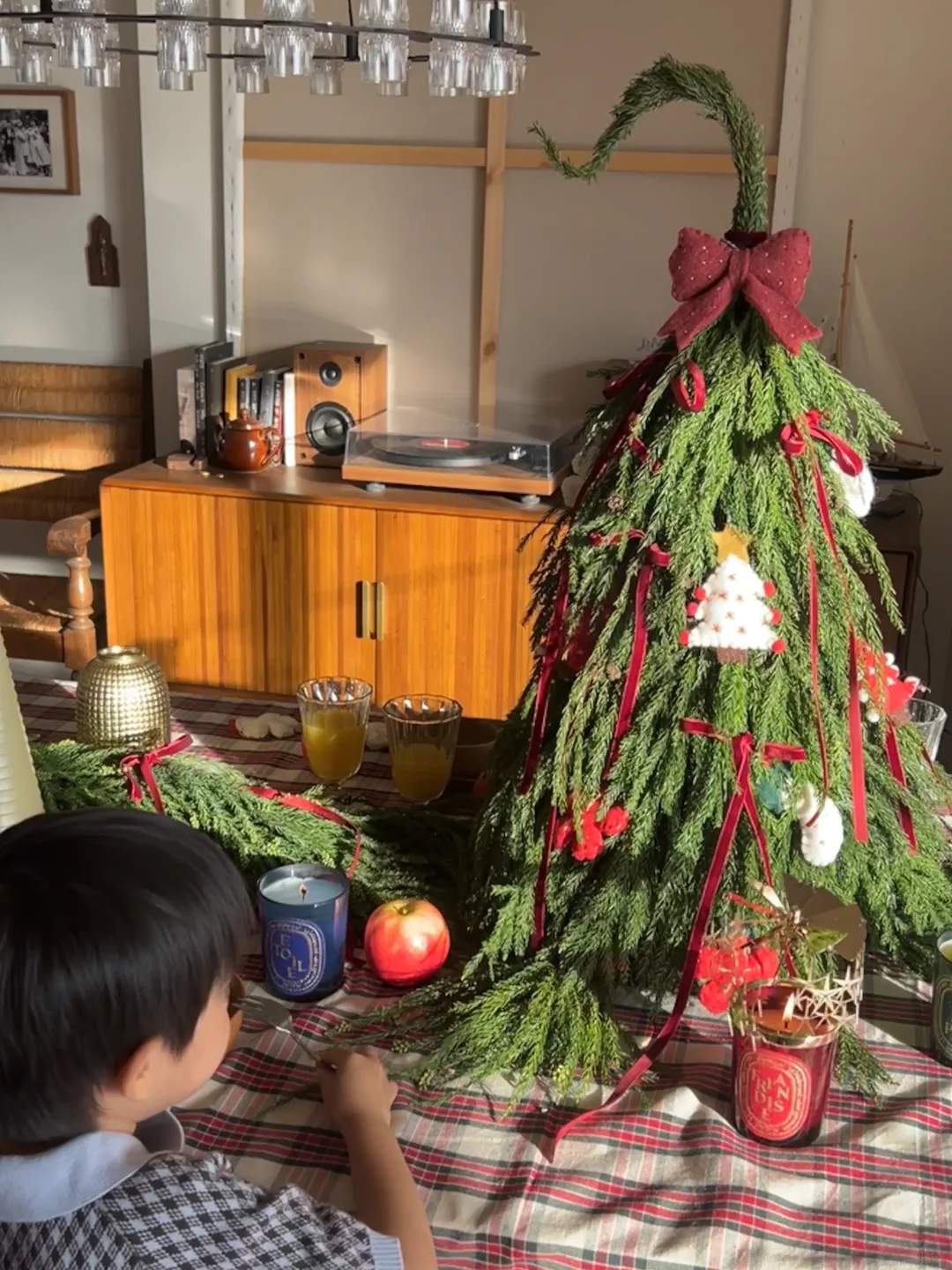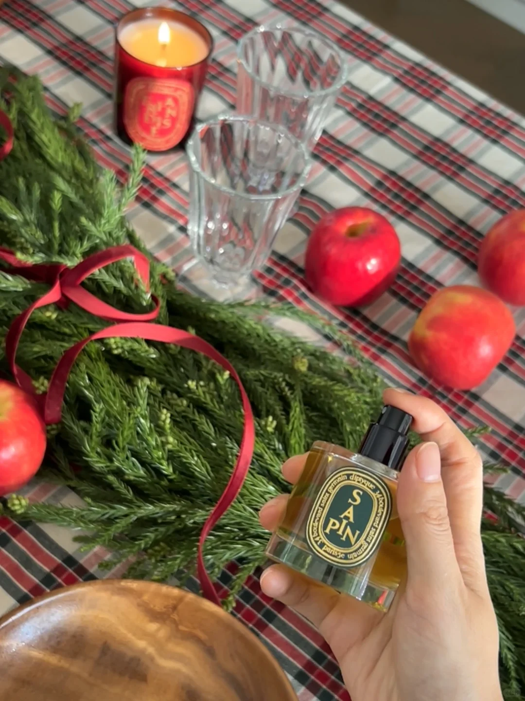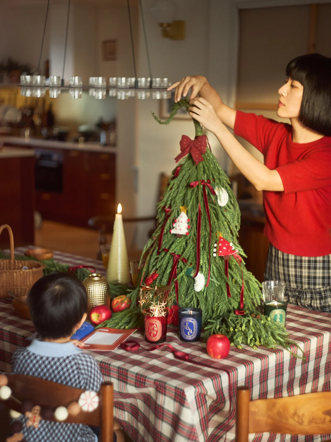 装上流星一般的旋转烛罩,就像打开了神秘魔法盒。阳光下,光影折射在墙壁上,随烛火旋转,好似一群跳跃的小精灵。圣诞倒计时蜡烛是一个冷杉树形状,用金色涂料印着1到25的数字蜡烛,非常有仪式感,每天点亮一次,倒数迎接节日的到来。最后再给家里喷上一点冷杉香氛,北欧童话的气息就更足了。