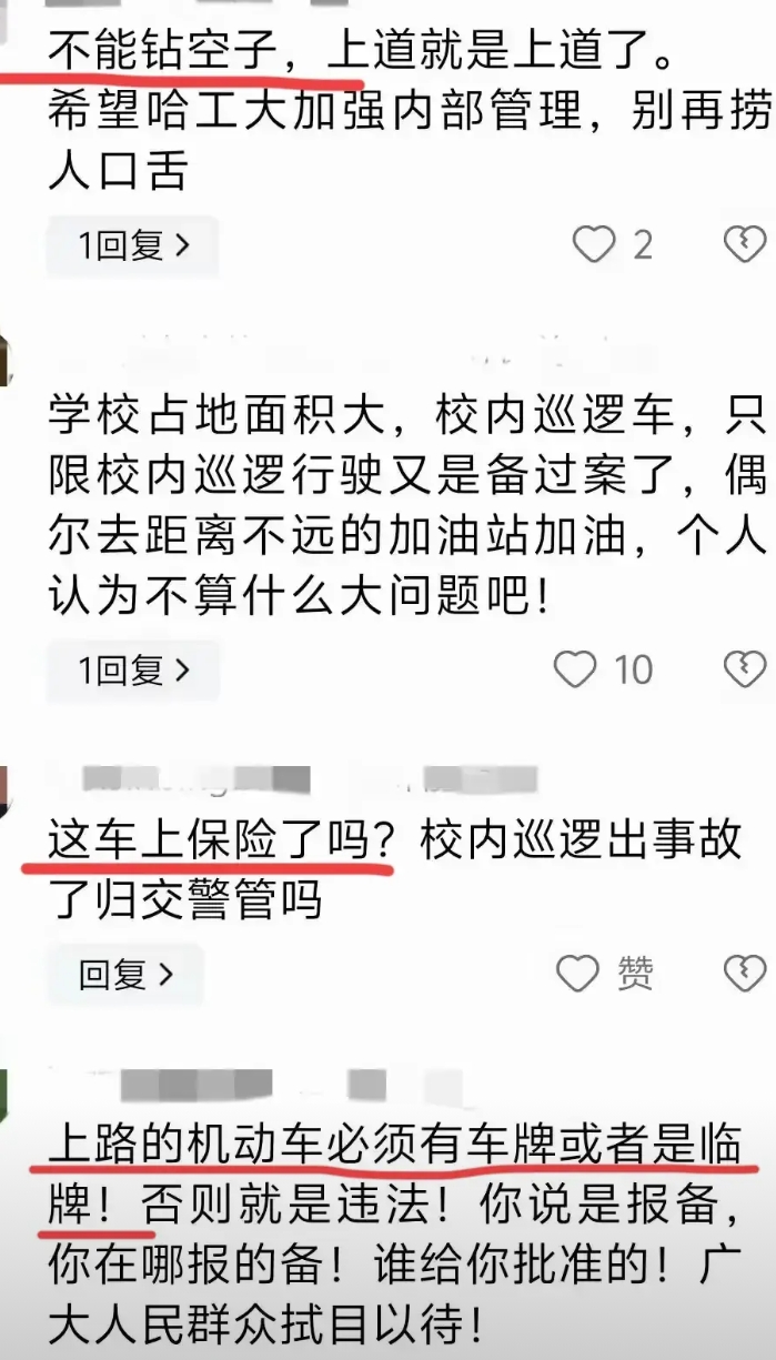 哈工大又出名了, 真的是人红是非多, 校内巡逻车出去加趟油就被各种喷, 能挂自己特殊牌照肯定是相关部门给批的, 这也是正常合规的有什么不可以呢? . 有的网友那个找茬,这不是那不行的, 官方授权也有牌照,又不是没牌黑车, 已经都说是记录备案的还有什么可质疑的? . 难道还非得逼着学校在园区里建个加油站? 这跟特权有什么关系?