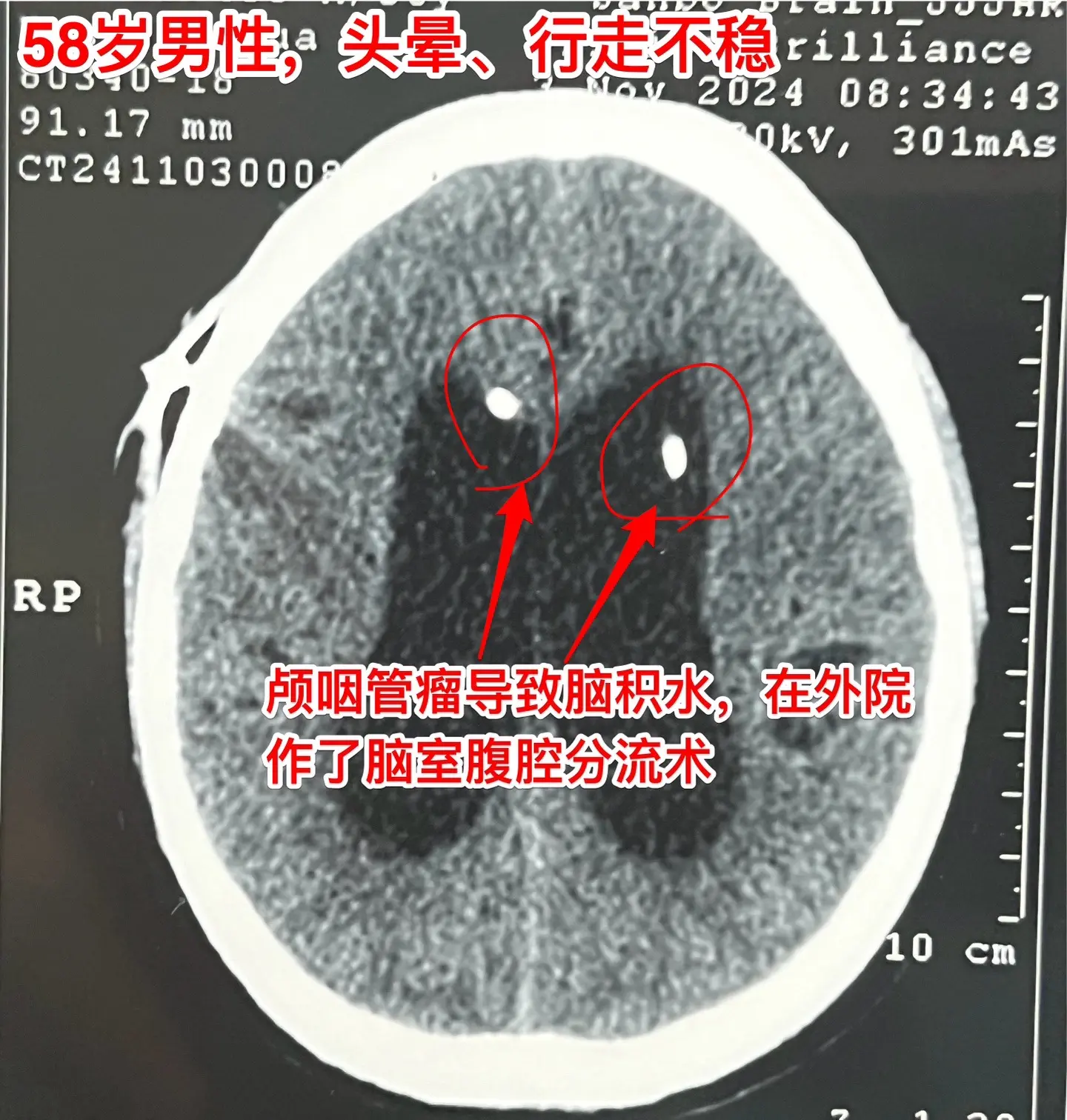 2024.9在外院作了脑积水的分流手术,没有切除肿瘤。手术后行走不稳症状有好转,但是思维糊涂症状却越来越严重,有时感头痛。