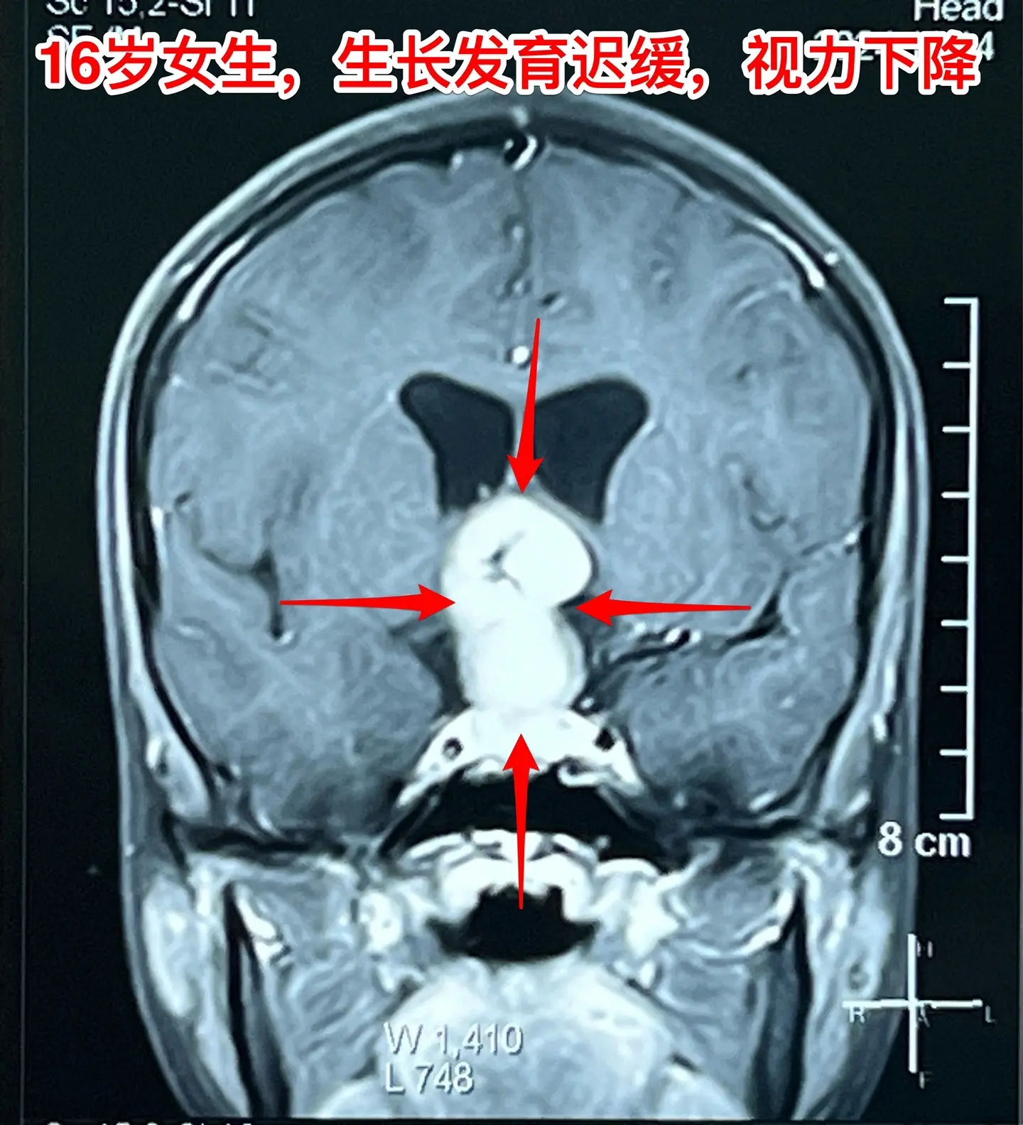 我多次提醒家长,如果发现小孩子的生长发育有异常,要尽早到医院去检查,找出原因,尤其是针对脑部要作磁共振检查,排除脑部肿瘤。对于生长激素缺乏者,不能不管原因,轻易注射生长激素治疗。