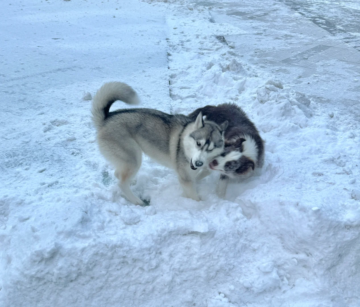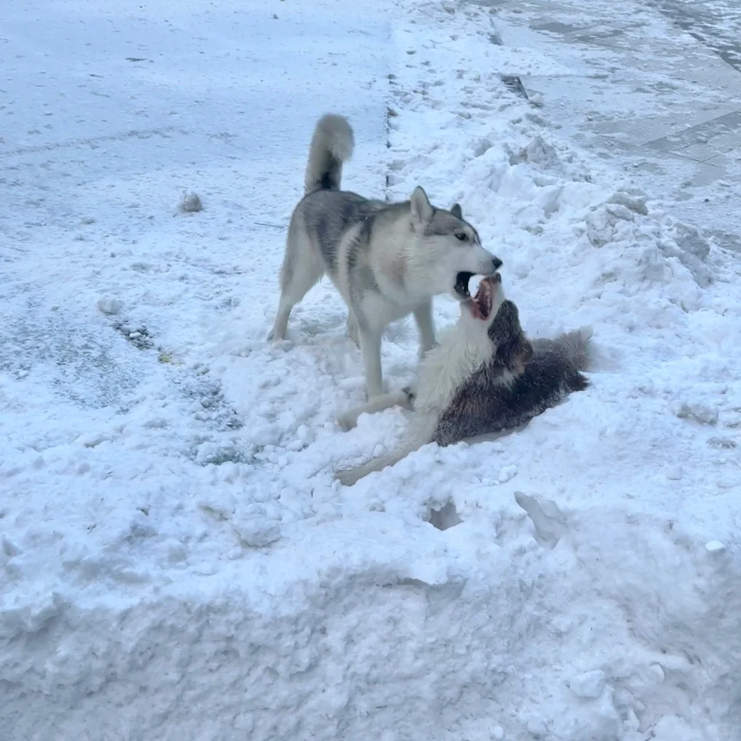 雪橇犬终于看到雪了