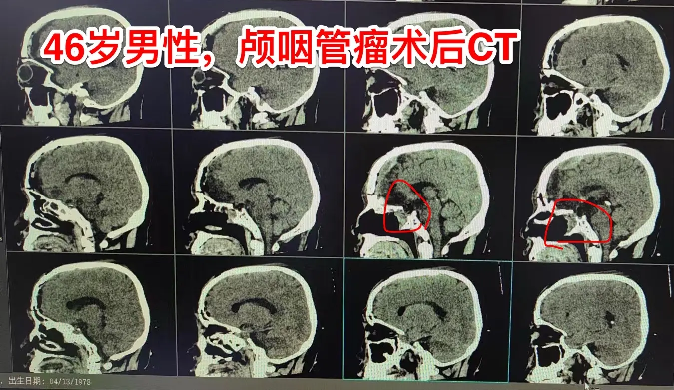 46岁男性两次经鼻手术后再次开颅手术。这是昨日视频中说到的男性病人。